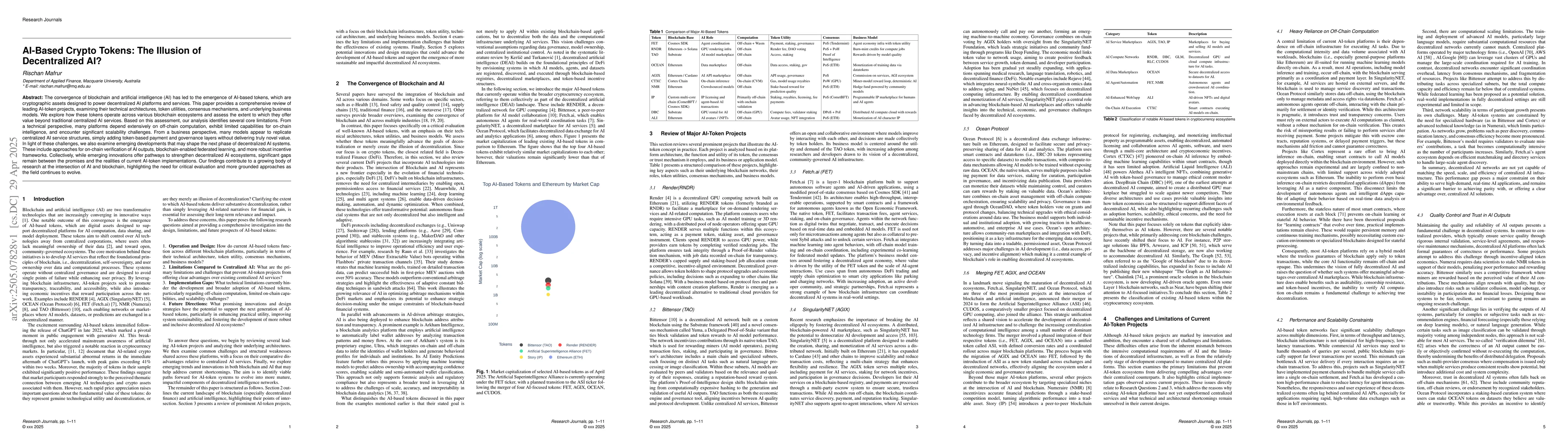 The paper provides a comprehensive review of leading AI-token projects, examining their technical architectures, token utilities, consensus mechanisms, and underlying business models.