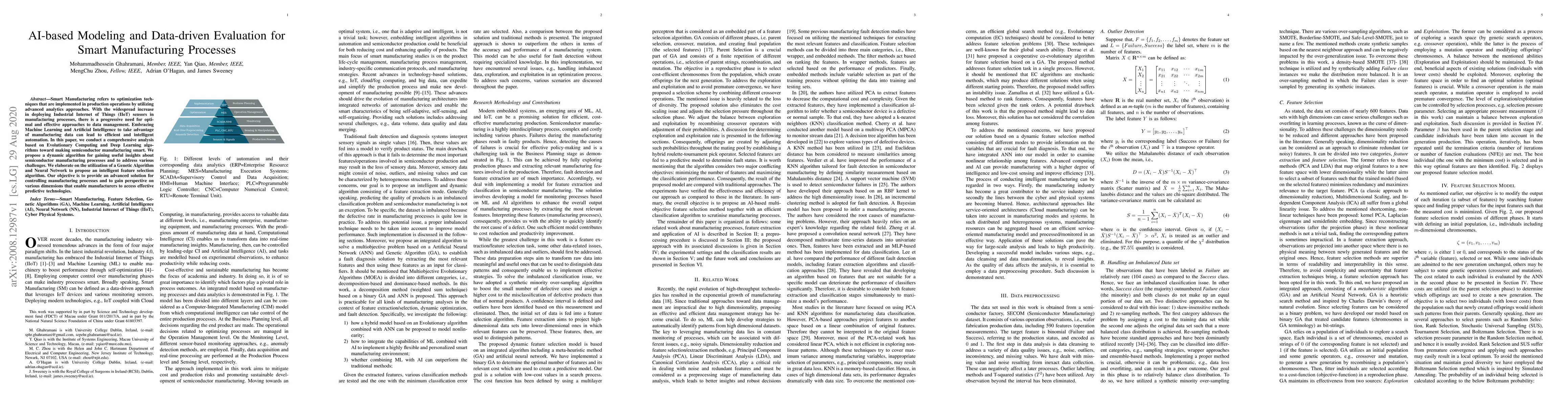 This paper explores AI-based modeling and data-driven evaluation for smart manufacturing, focusing on semiconductor processes. It proposes a dynamic algorithm using Evolutionary Computing and Deep Learning to optimize manufacturing operations, leveraging a Genetic Algorithm and Neural Network for intelligent feature selection.