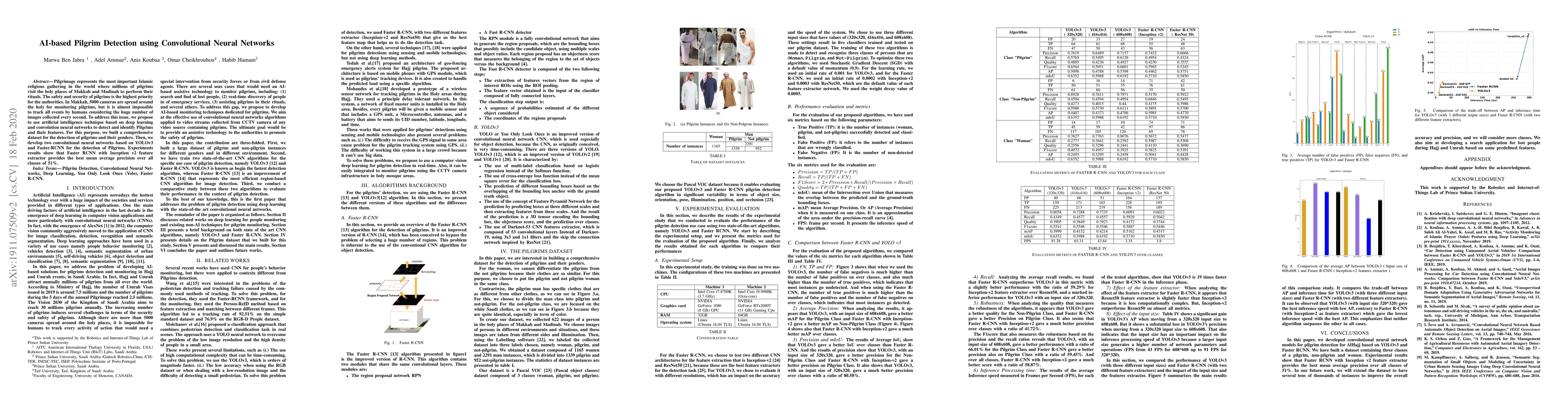 This research proposes an AI-based system using convolutional neural networks to detect and identify pilgrims in large crowds in Makkah. The study develops two deep learning models, YOLOv3 and Faster-RCNN, achieving the best results with Faster-RCNN and Inception v2, achieving a mean average precision of 51%.