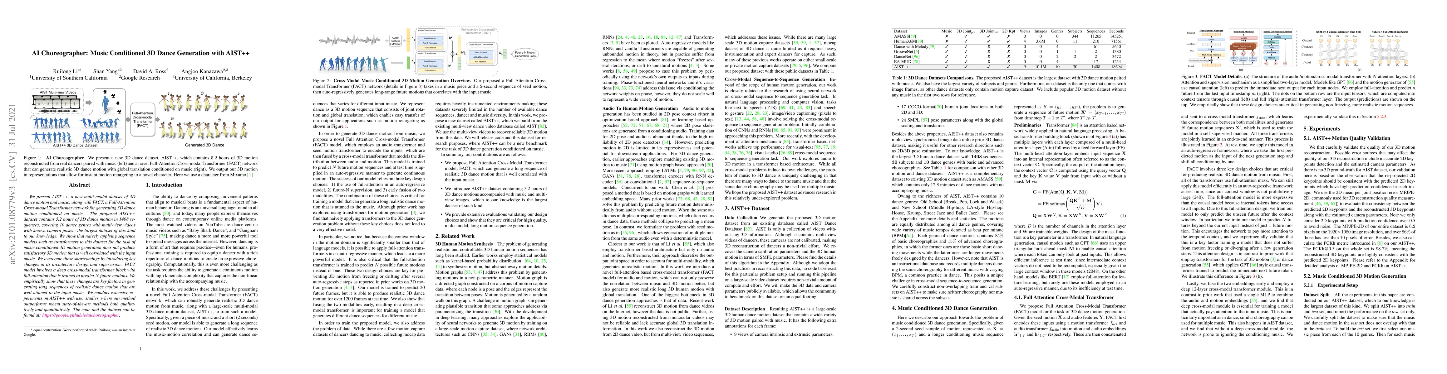 The paper introduces AIST++, a large multi-modal dataset of 3D dance motion synchronized with music, and FACT, a Full-Attention Cross-modal Transformer network for generating dance motions conditioned on music. The FACT model significantly improves the generation of realistic dance sequences that align well with the input music, outperforming existing methods in both qualitative and quantitative assessments.