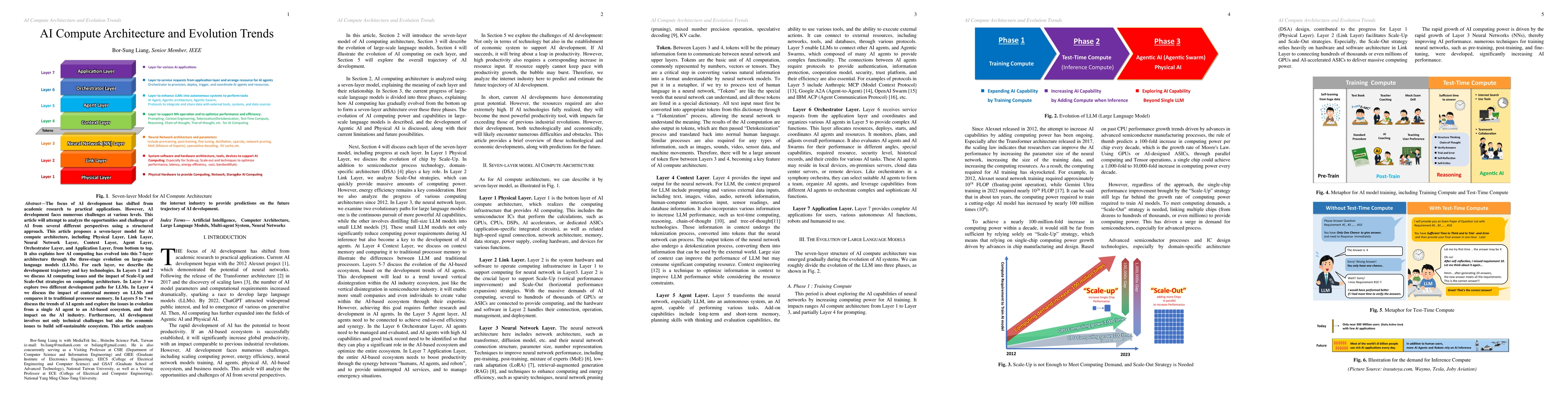 The focus of AI development has shifted from academic research to practical applications. However, AI development faces numerous challenges at various levels. This article will attempt to analyze the opportunities and challenges of AI from several different perspectives using a structured approach. This article proposes a seven-layer model for AI compute architecture, including Physical Layer, Link Layer, Neural Network Layer, Context Layer, Agent Layer, Orchestrator Layer, and Application Layer, from bottom to top. It also explains how AI computing has evolved into this 7-layer architecture through the three-stage evolution on large-scale language models (LLMs). For each layer, we describe the development trajectory and key technologies. In Layers 1 and 2 we discuss AI computing issues and the impact of Scale-Up and Scale-Out strategies on computing architecture. In Layer 3 we explore two different development paths for LLMs. In Layer 4 we discuss the impact of contextual memory on LLMs and compares it to traditional processor memory. In Layers 5 to 7 we discuss the trends of AI agents and explore the issues in evolution from a single AI agent to an AI-based ecosystem, and their impact on the AI industry. Furthermore, AI development involves not only technical challenges but also the economic issues to build self-sustainable ecosystem. This article analyzes the internet industry to provide predictions on the future trajectory of AI development.
