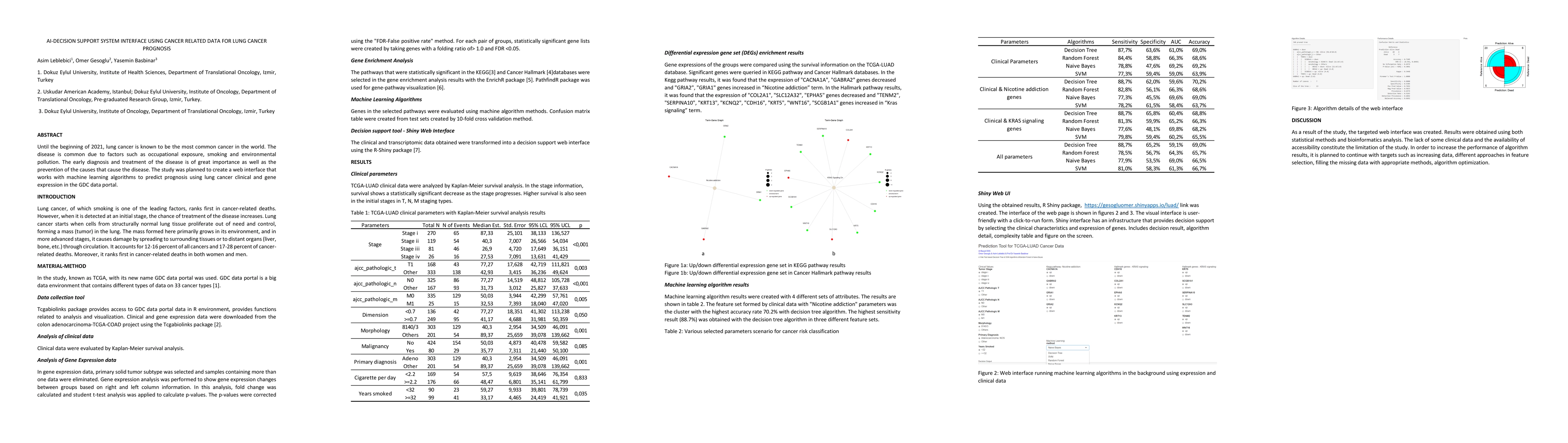 Until the beginning of 2021, lung cancer is known to be the most common cancer in the world. The disease is common due to factors such as occupational exposure, smoking and environmental pollution. The early diagnosis and treatment of the disease is of great importance as well as the prevention of the causes that cause the disease. The study was planned to create a web interface that works with machine learning algorithms to predict prognosis using lung cancer clinical and gene expression in the GDC data portal.
