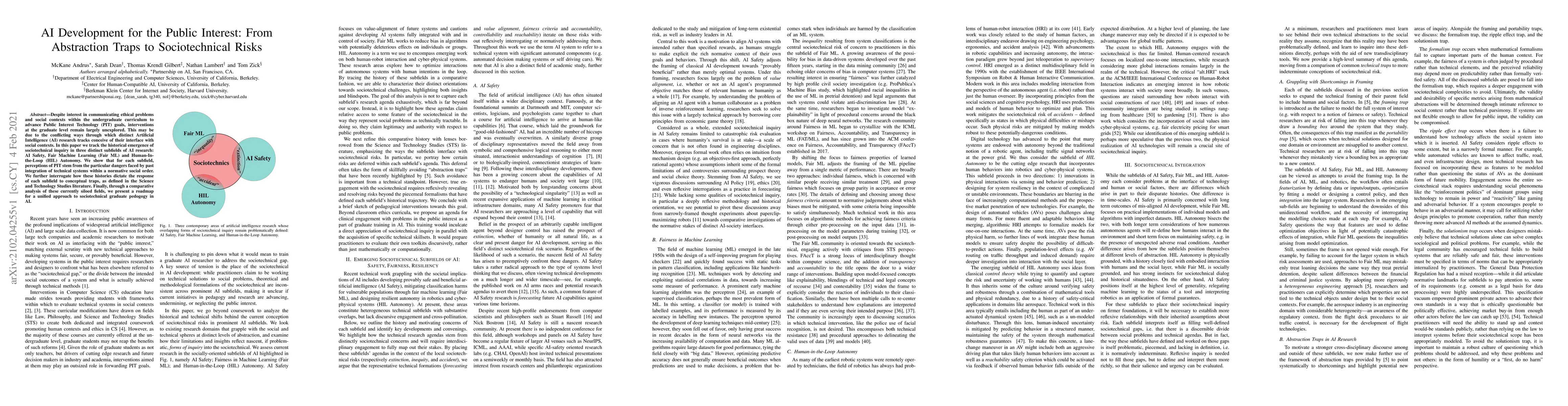 Despite interest in communicating ethical problems and social contexts within the undergraduate curriculum to advance Public Interest Technology (PIT) goals, interventions at the graduate level remain largely unexplored. This may be due to the conflicting ways through which distinct Artificial Intelligence (AI) research tracks conceive of their interface with social contexts. In this paper we track the historical emergence of sociotechnical inquiry in three distinct subfields of AI research: AI Safety, Fair Machine Learning (Fair ML) and Human-in-the-Loop (HIL) Autonomy. We show that for each subfield, perceptions of PIT stem from the particular dangers faced by past integration of technical systems within a normative social order. We further interrogate how these histories dictate the response of each subfield to conceptual traps, as defined in the Science and Technology Studies literature. Finally, through a comparative analysis of these currently siloed fields, we present a roadmap for a unified approach to sociotechnical graduate pedagogy in AI.