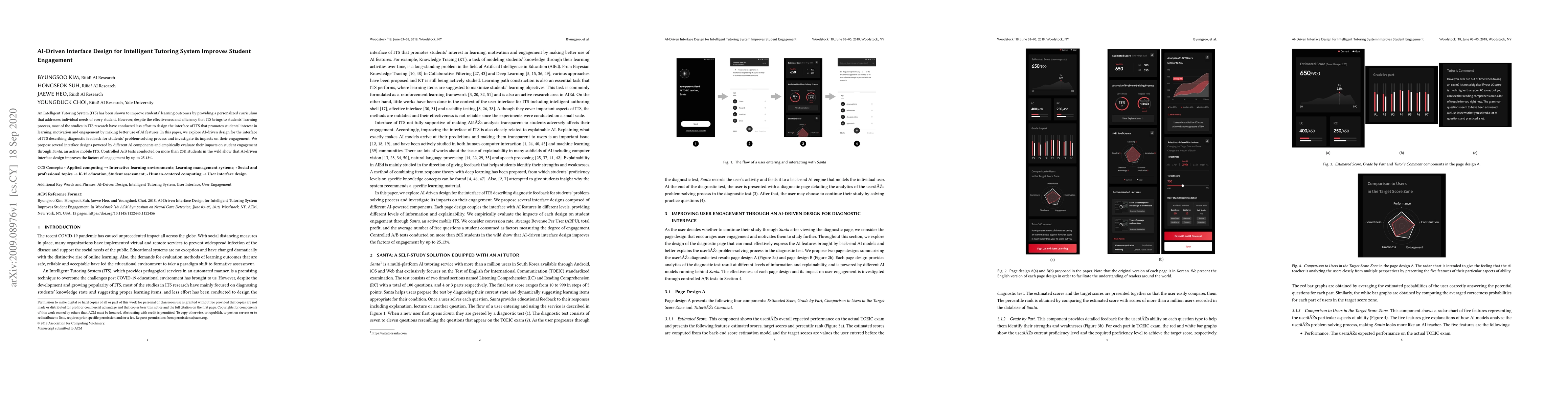 This paper investigates AI-driven interface design for an Intelligent Tutoring System (ITS) to enhance student engagement. It proposes several AI-powered interface designs and finds that they improve engagement by up to 25.13% through controlled A/B tests involving over 20,000 students.