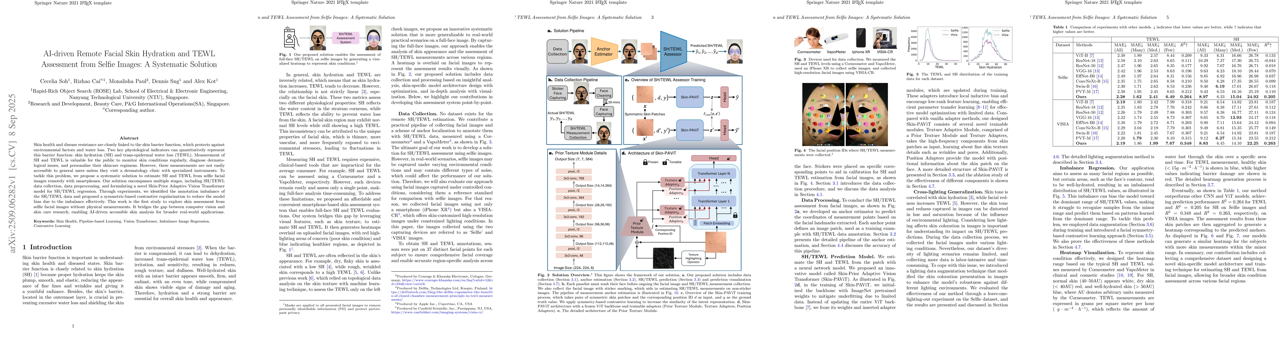 Skin health and disease resistance are closely linked to the skin barrier function, which protects against environmental factors and water loss. Two key physiological indicators can quantitatively represent this barrier function: skin hydration (SH) and trans-epidermal water loss (TEWL). Measurement of SH and TEWL is valuable for the public to monitor skin conditions regularly, diagnose dermatological issues, and personalize their skincare regimens. However, these measurements are not easily accessible to general users unless they visit a dermatology clinic with specialized instruments. To tackle this problem, we propose a systematic solution to estimate SH and TEWL from selfie facial images remotely with smartphones. Our solution encompasses multiple stages, including SH/TEWL data collection, data preprocessing, and formulating a novel Skin-Prior Adaptive Vision Transformer model for SH/TEWL regression. Through experiments, we identified the annotation imbalance of the SH/TEWL data and proposed a symmetric-based contrastive regularization to reduce the model bias due to the imbalance effectively. This work is the first study to explore skin assessment from selfie facial images without physical measurements. It bridges the gap between computer vision and skin care research, enabling AI-driven accessible skin analysis for broader real-world applications.