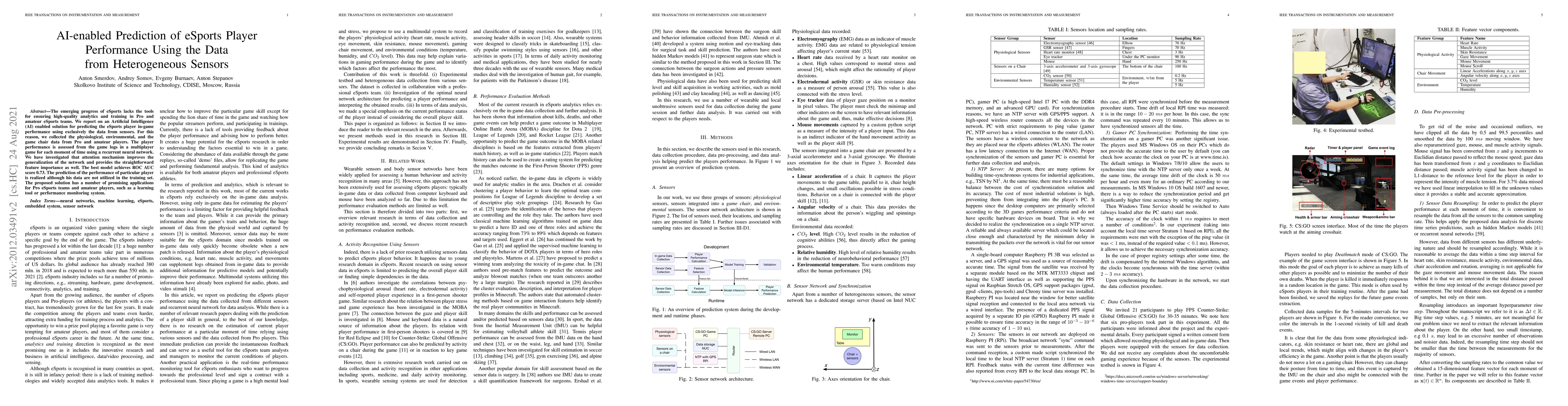 This paper presents an AI-enabled method for predicting eSports player performance using data from heterogeneous sensors, including physiological, environmental, and game chair data. The model employs a recurrent neural network with an attention mechanism, achieving a ROC AUC score of 0.73 and demonstrating potential for use in performance monitoring and training tools for both Pro and amateur players.