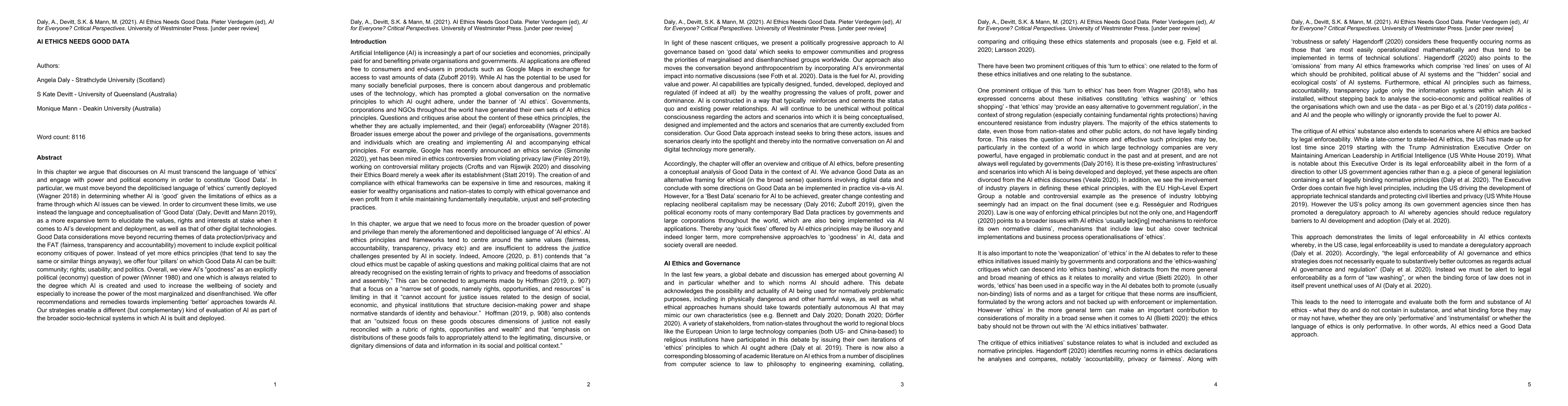 In this chapter we argue that discourses on AI must transcend the language of 'ethics' and engage with power and political economy in order to constitute 'Good Data'. In particular, we must move beyond the depoliticised language of 'ethics' currently deployed (Wagner 2018) in determining whether AI is 'good' given the limitations of ethics as a frame through which AI issues can be viewed. In order to circumvent these limits, we use instead the language and conceptualisation of 'Good Data', as a more expansive term to elucidate the values, rights and interests at stake when it comes to AI's development and deployment, as well as that of other digital technologies. Good Data considerations move beyond recurring themes of data protection/privacy and the FAT (fairness, transparency and accountability) movement to include explicit political economy critiques of power. Instead of yet more ethics principles (that tend to say the same or similar things anyway), we offer four 'pillars' on which Good Data AI can be built: community, rights, usability and politics. Overall we view AI's 'goodness' as an explicly political (economy) question of power and one which is always related to the degree which AI is created and used to increase the wellbeing of society and especially to increase the power of the most marginalized and disenfranchised. We offer recommendations and remedies towards implementing 'better' approaches towards AI. Our strategies enable a different (but complementary) kind of evaluation of AI as part of the broader socio-technical systems in which AI is built and deployed.