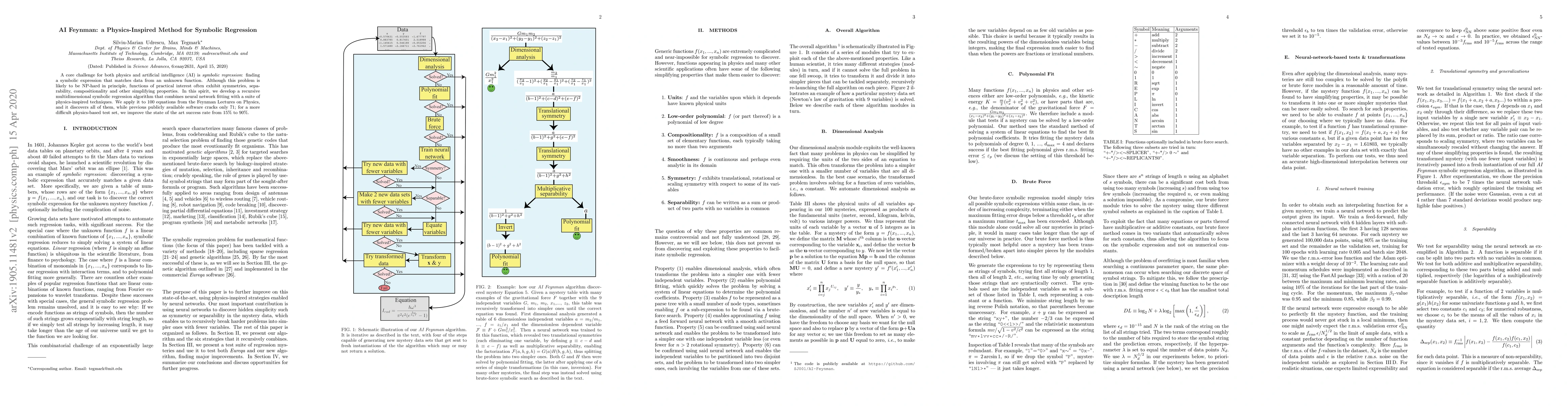 AI Feynman employs a physics-inspired recursive algorithm combining neural networks with symbolic regression techniques to discover symbolic expressions from data. It outperforms existing methods by successfully identifying all 100 equations from Feynman's Lectures, significantly improving the success rate on a more challenging test set.