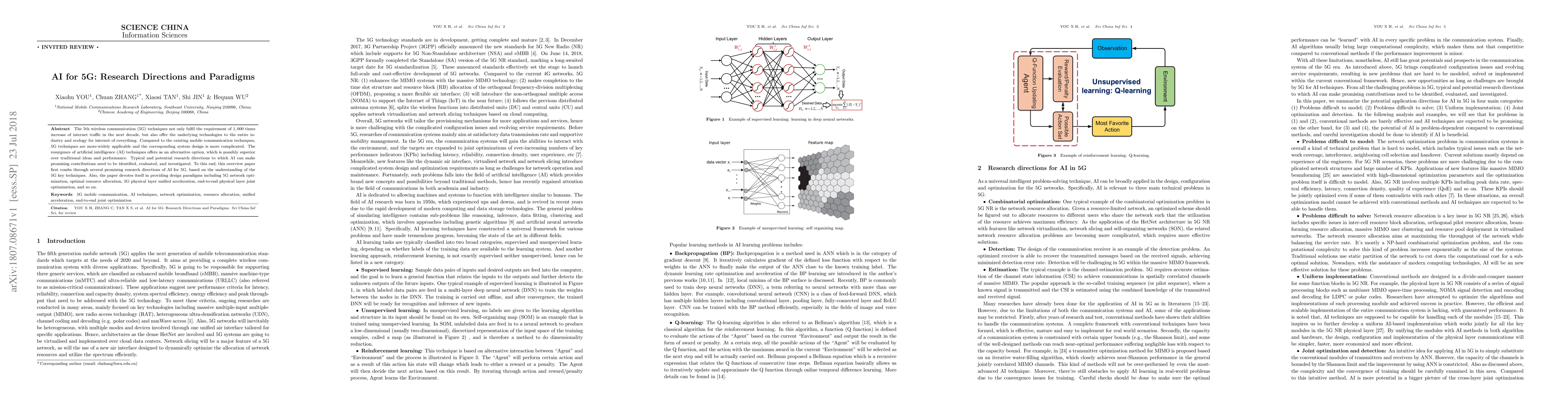 This paper explores the integration of artificial intelligence (AI) with 5G technologies to enhance system design and performance. It identifies promising research directions and design paradigms for AI applications in 5G, including network optimization and resource allocation.