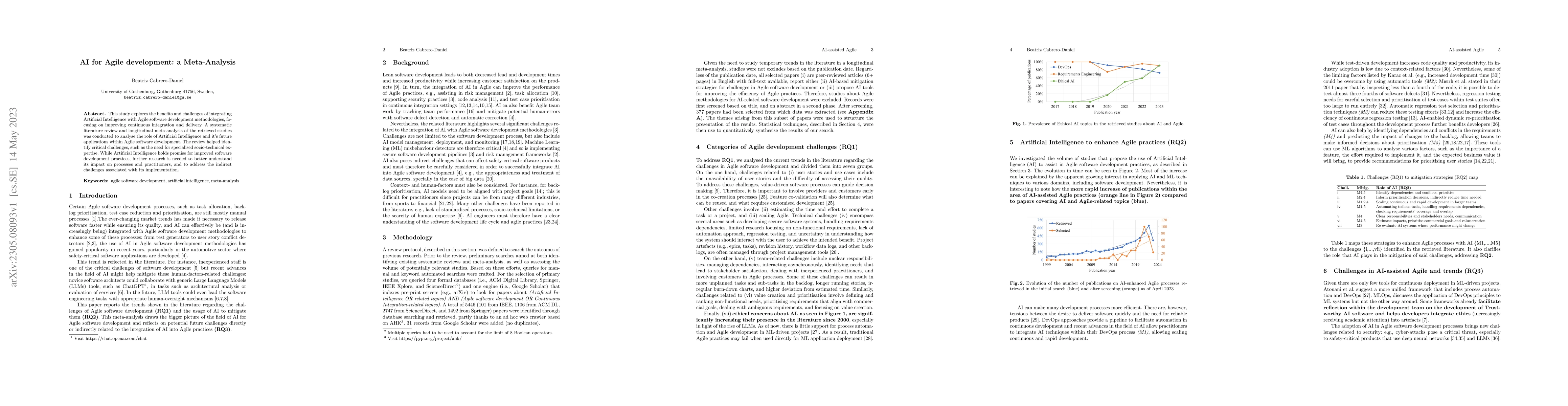 This meta-analysis investigates the integration of AI in Agile software development, highlighting its potential to enhance continuous integration and delivery. Despite promising benefits, challenges like specialized expertise and indirect implementation issues remain, underscoring the need for further research.