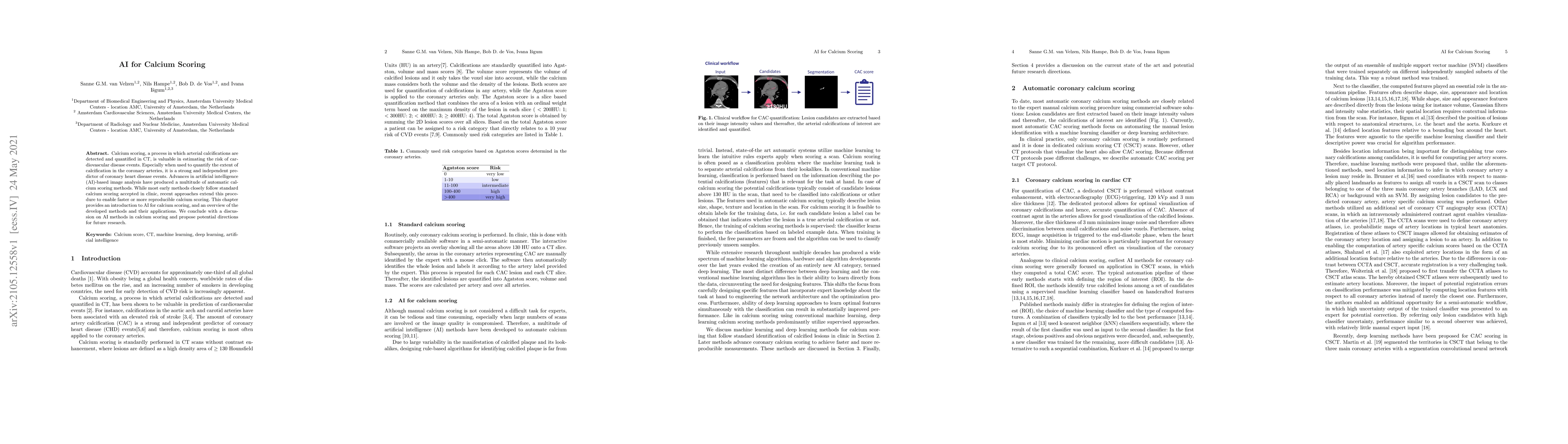This paper introduces AI-based methods for calcium scoring in CT scans, emphasizing their role in estimating cardiovascular disease risk. It reviews developed techniques, highlighting advancements that enable faster and more reproducible scoring, and discusses future research directions.