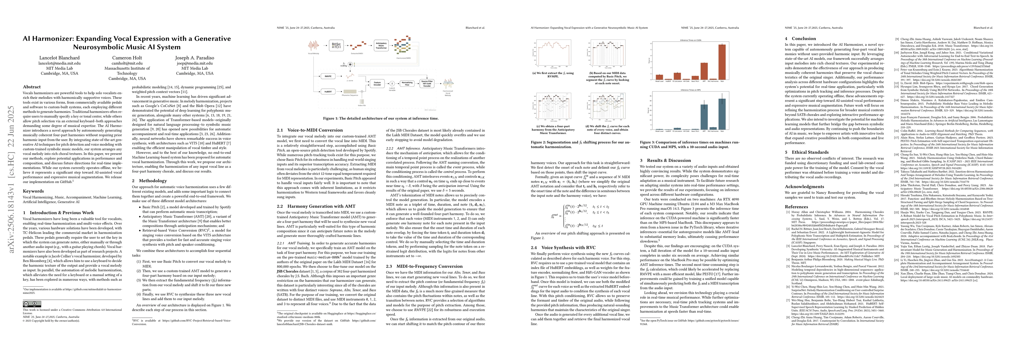 Vocals harmonizers are powerful tools to help solo vocalists enrich their melodies with harmonically supportive voices. These tools exist in various forms, from commercially available pedals and software to custom-built systems, each employing different methods to generate harmonies. Traditional harmonizers often require users to manually specify a key or tonal center, while others allow pitch selection via an external keyboard-both approaches demanding some degree of musical expertise. The AI Harmonizer introduces a novel approach by autonomously generating musically coherent four-part harmonies without requiring prior harmonic input from the user. By integrating state-of-the-art generative AI techniques for pitch detection and voice modeling with custom-trained symbolic music models, our system arranges any vocal melody into rich choral textures. In this paper, we present our methods, explore potential applications in performance and composition, and discuss future directions for real-time implementations. While our system currently operates offline, we believe it represents a significant step toward AI-assisted vocal performance and expressive musical augmentation. We release our implementation on GitHub.