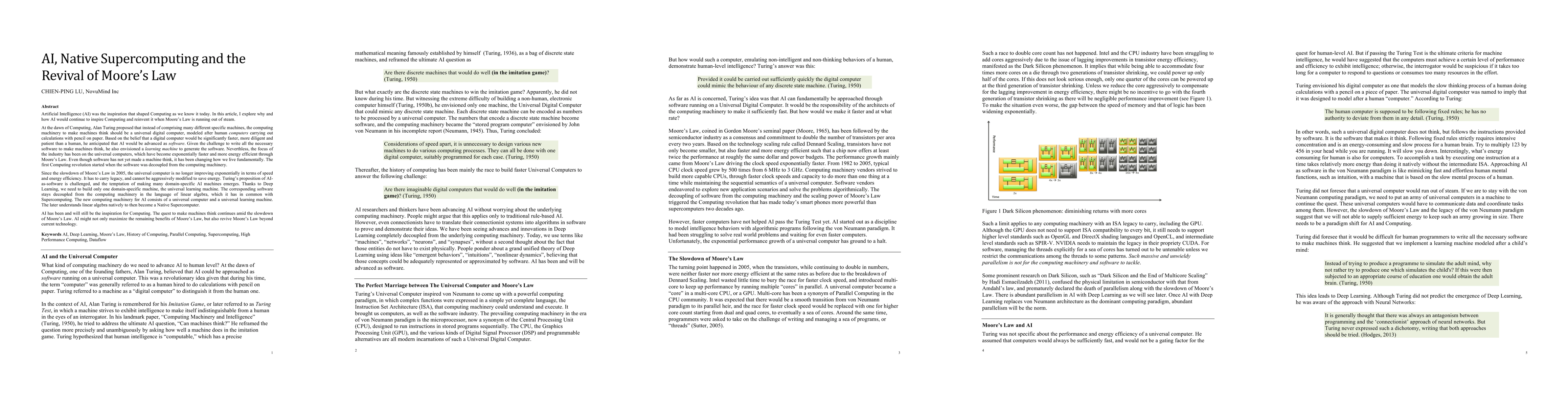 Based on Alan Turing's proposition on AI and computing machinery, which shaped Computing as we know it today, the new AI computing machinery should comprise a universal computer and a universal learning machine. The later should understand linear algebra natively to overcome the slowdown of Moore's law. In such a universal learnig machine, a computing unit does not need to keep the legacy of a universal computing core. The data can be distributed to the computing units, and the results can be collected from them through Collective Streaming, reminiscent of Collective Communication in Supercomputing. It is not necessary to use a GPU-like deep memory hierarchy, nor a TPU-like fine-grain mesh.