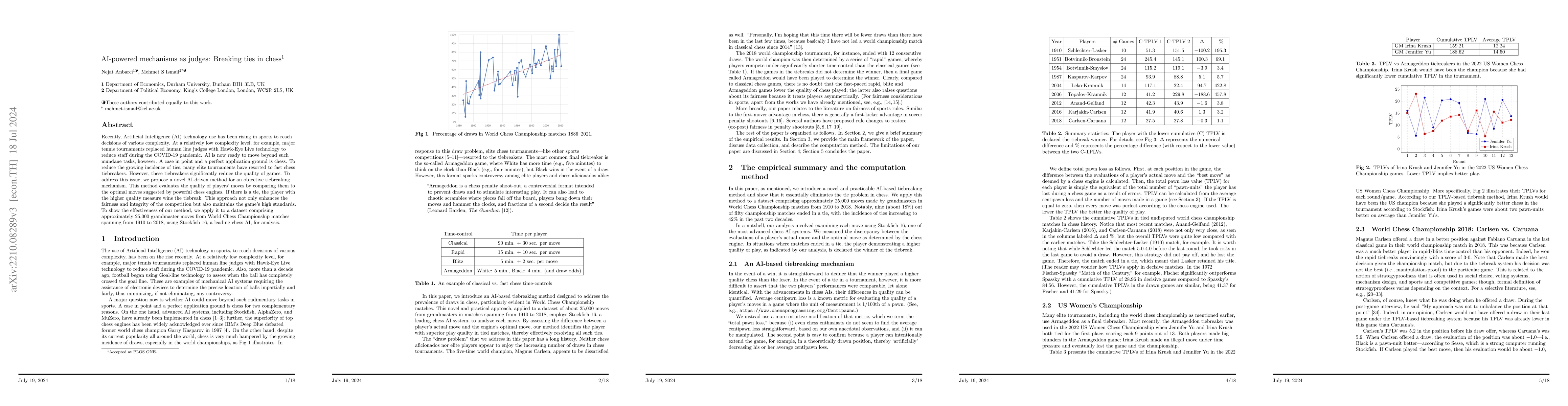 This paper proposes an AI-powered mechanism to break ties in chess and other competitive sports, addressing the issue of strategic manipulation in traditional tiebreaks. The method measures the difference between a player's move and the best move, as evaluated by a powerful chess engine, to ensure fair tiebreaks without manipulation.