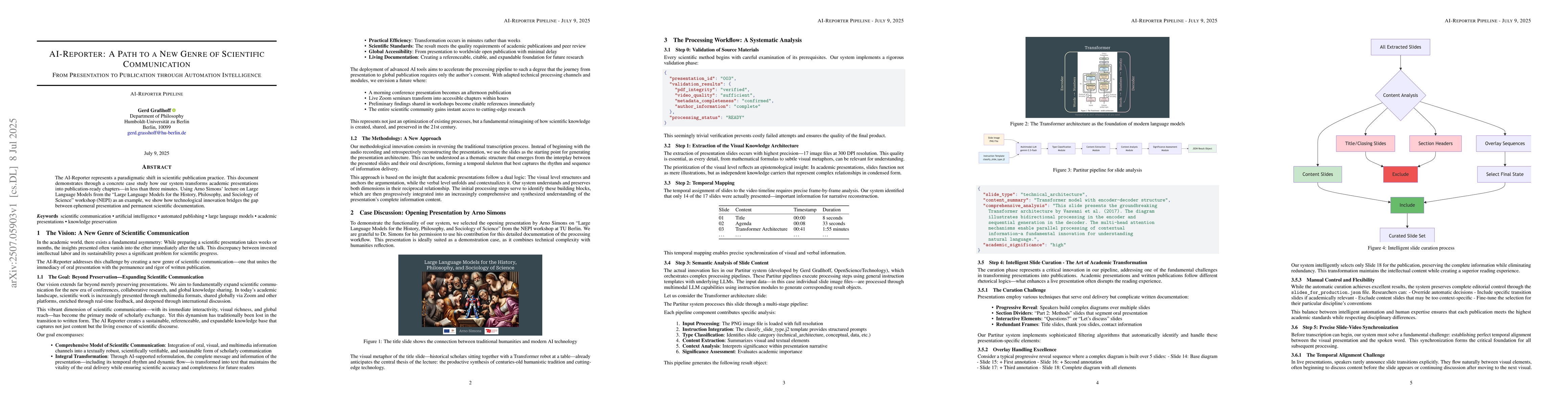 The AI-Reporter represents a paradigmatic shift in scientific publication practice. This document demonstrates through a concrete case study how our system transforms academic presentations into publication-ready chapters -- in less than three minutes. Using Arno Simons' lecture on Large Language Models from the ``Large Language Models for the History, Philosophy, and Sociology of Science'' workshop (NEPI) as an example, we show how technological innovation bridges the gap between ephemeral presentation and permanent scientific documentation.