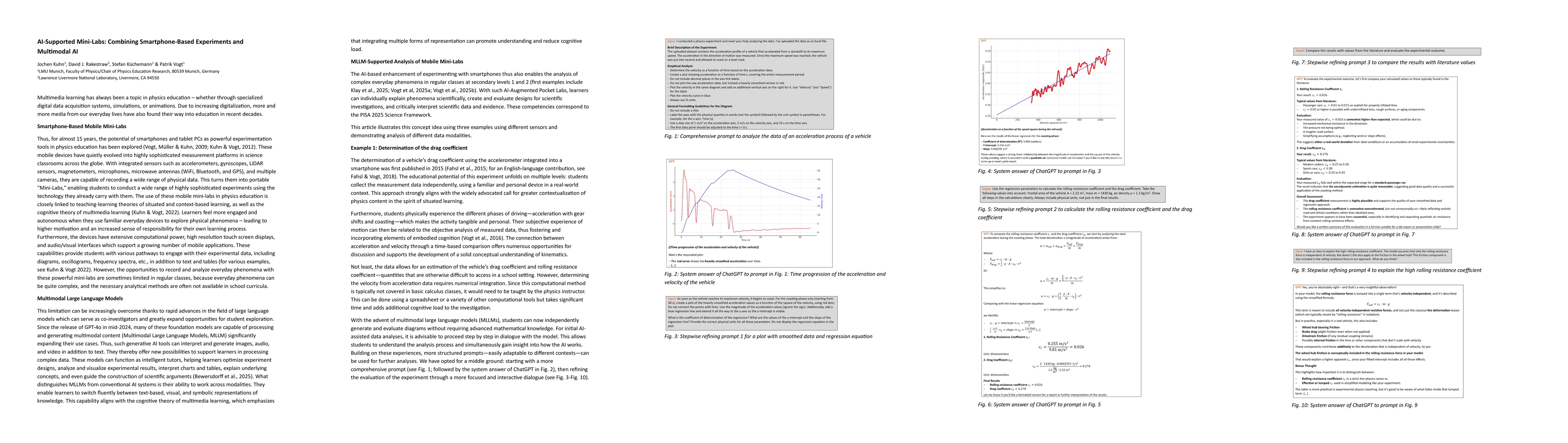This paper presents the concept of AI-supported Mini-Labs, combining smartphone-based experiments with multimodal large language models (MLLMs). Smartphones, with their integrated sensors and computational power, function as versatile mobile laboratories for physics education. While they enable the collection of rich experimental data, the analysis of complex everyday phenomena has often been limited in the classroom. Advances in MLLMs now allow learners to process multimodal data, text, images, audio, and video, and receive support in experiment design, data analysis, and scientific interpretation. Three case studies highlight the approach: determining a vehicle drag coefficient from accelerometer data, measuring the ionospheric reflection height from lightning-generated signals analyzed as audio spectrograms, and real-time spectroscopy of blood volume dynamics using smartphone video. The results show clear advantages over conventional methods, including time savings, high-quality visualizations, and individualized guidance. Beyond simplifying data analysis, AI-augmented pocket labs foster representational competence, critical thinking, and 21st-century skills. This hybrid approach offers a promising pathway for individualized and inquiry-based science education, though further studies are needed to assess long-term learning effects and potential risks.