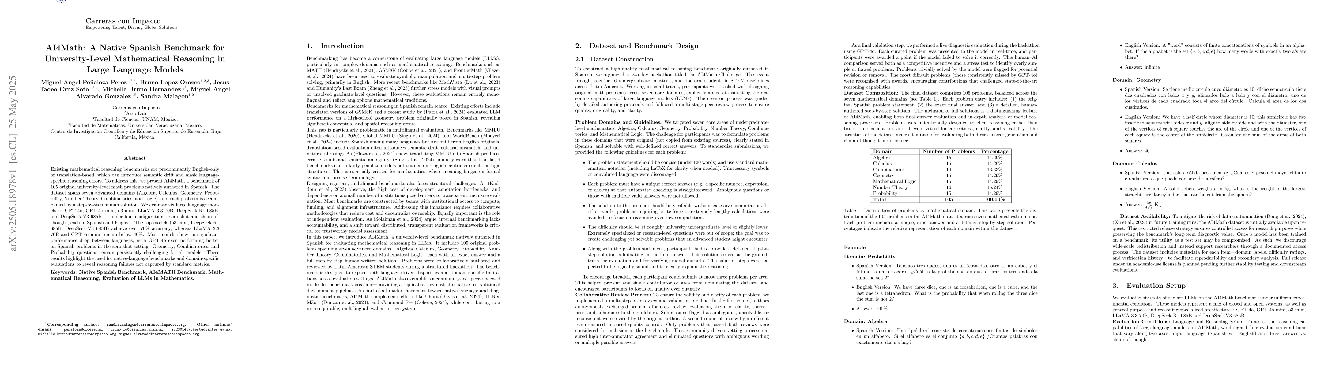 AI4Math is the first native Spanish benchmark for university-level mathematical reasoning, addressing the gap in language-specific evaluations of mathematical reasoning in large language models.