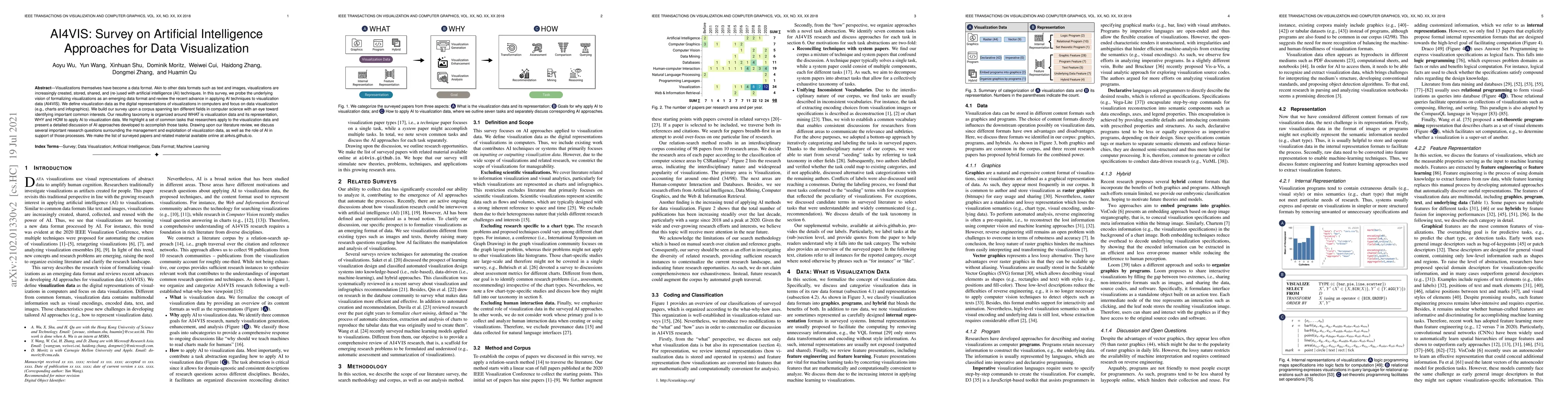 This survey explores the use of artificial intelligence (AI) techniques in data visualization, defining visualization data as digital representations of visualizations. It reviews recent advances in AI4VIS, focusing on data visualization tasks and presents a taxonomy organized around the representation, application, and management of visualization data using AI.