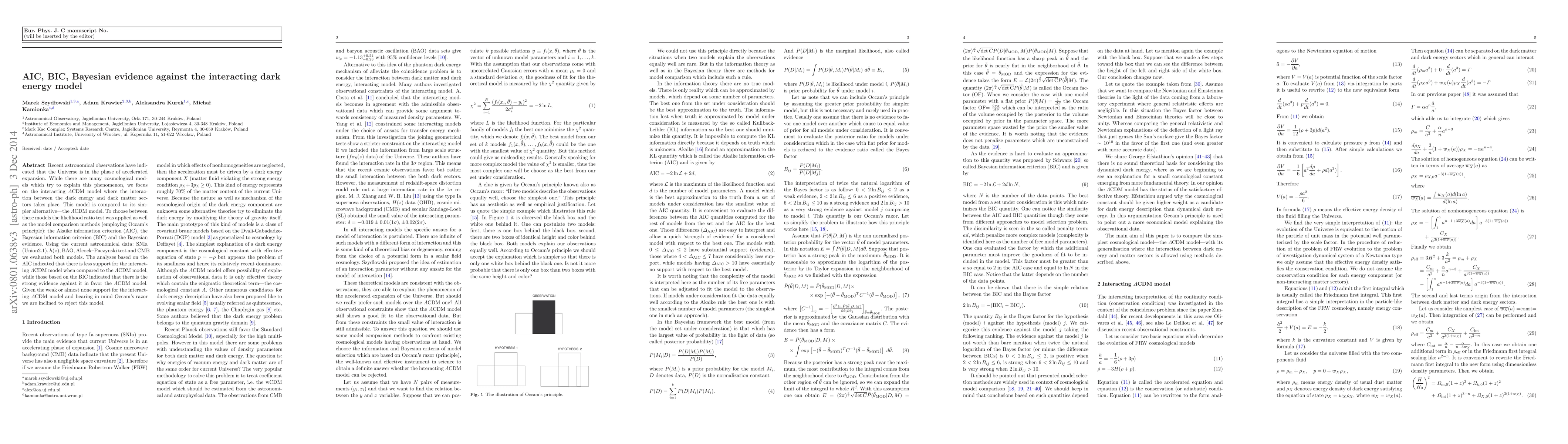 Recent astronomical observations have indicated that the Universe is in the phase of accelerated expansion. While there are many cosmological models which try to explain this phenomenon, we focus on the interacting $\Lambda$CDM model where the interaction between the dark energy and dark matter sectors takes place. This model is compared to its simpler alternative---the $\Lambda$CDM model. To choose between these models the likelihood ratio test was applied as well as the model comparison methods (employing Occam's principle): the Akaike information criterion (AIC), the Bayesian information criterion (BIC) and the Bayesian evidence. Using the current astronomical data: SNIa (Union2.1), $h(z)$, BAO, Alcock--Paczynski test and CMB we evaluated both models. The analyses based on the AIC indicated that there is less support for the interacting $\Lambda$CDM model when compared to the $\Lambda$CDM model, while those based on the BIC indicated that there is the strong evidence against it in favor the $\Lambda$CDM model. Given the weak or almost none support for the interacting $\Lambda$CDM model and bearing in mind Occam's razor we are inclined to reject this model.