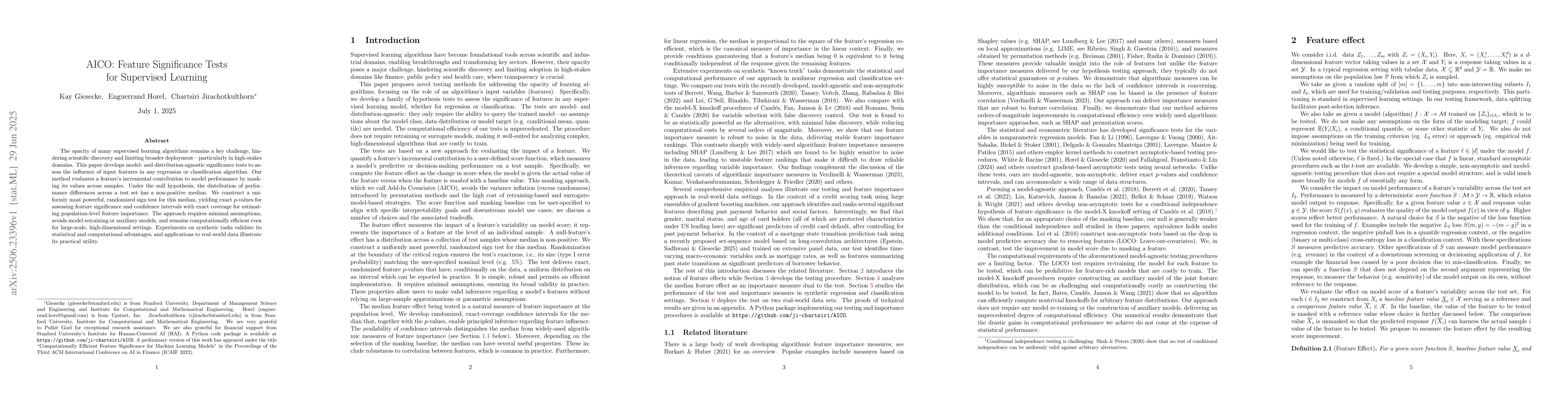 The opacity of many supervised learning algorithms remains a key challenge, hindering scientific discovery and limiting broader deployment -- particularly in high-stakes domains. This paper develops model- and distribution-agnostic significance tests to assess the influence of input features in any regression or classification algorithm. Our method evaluates a feature's incremental contribution to model performance by masking its values across samples. Under the null hypothesis, the distribution of performance differences across a test set has a non-positive median. We construct a uniformly most powerful, randomized sign test for this median, yielding exact p-values for assessing feature significance and confidence intervals with exact coverage for estimating population-level feature importance. The approach requires minimal assumptions, avoids model retraining or auxiliary models, and remains computationally efficient even for large-scale, high-dimensional settings. Experiments on synthetic tasks validate its statistical and computational advantages, and applications to real-world data illustrate its practical utility.