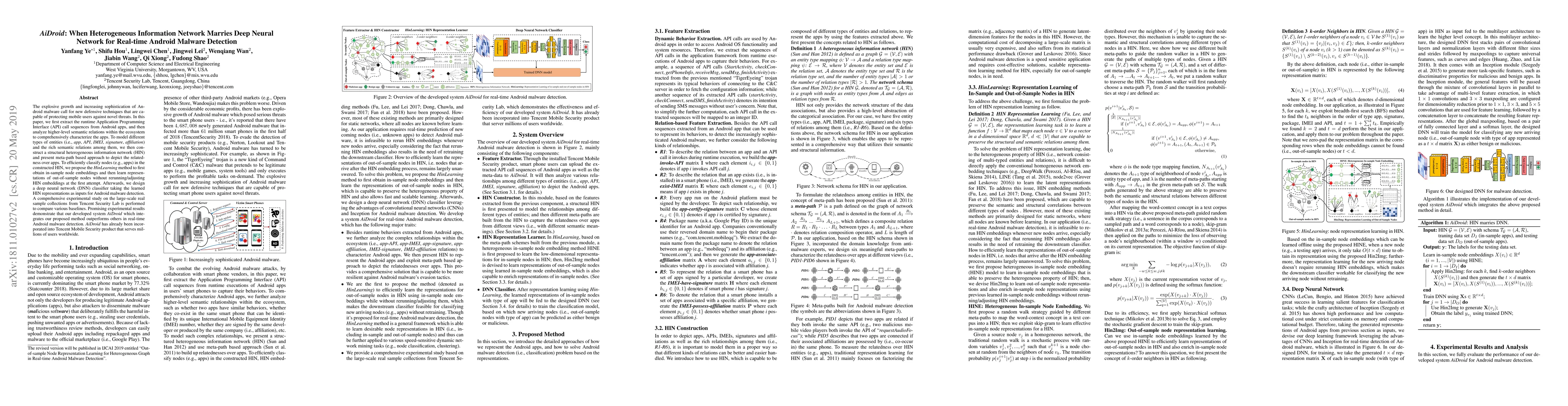 AiDroid integrates a heterogeneous information network with deep neural networks to detect real-time Android malware by analyzing runtime API call sequences and constructing a structural network. Experimental results show that AiDroid outperforms other methods, and it is now deployed in Tencent Mobile Security for global user protection.