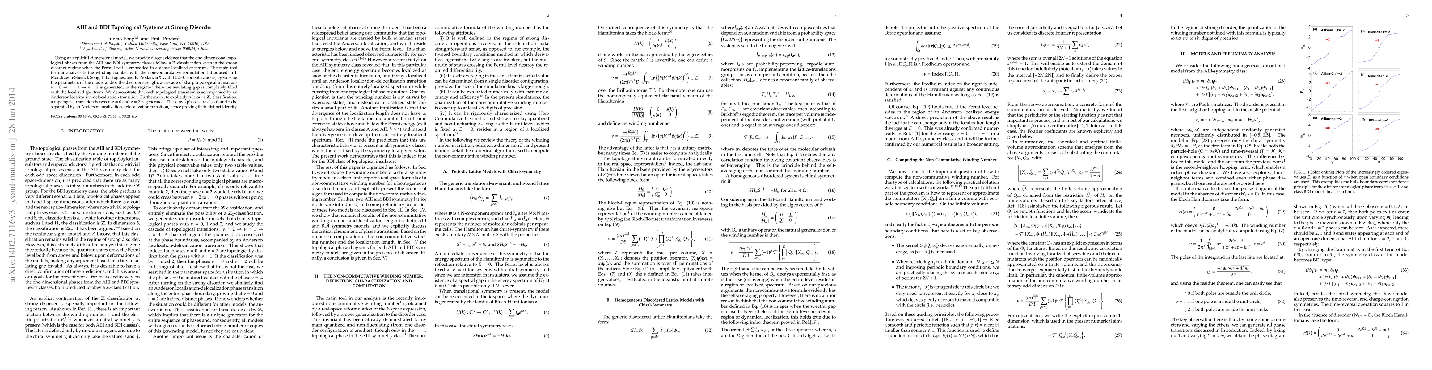 Using an explicit 1-dimensional model, we provide direct evidence that the one-dimensional topological phases from the AIII and BDI symmetry classes follow a $\mathbb Z$-classification, even in the strong disorder regime when the Fermi level is embedded in a dense localized spectrum. The main tool for our analysis is the winding number $\nu$, in the non-commutative formulation introduced in I. Mondragon-Shem, J. Song, T. L. Hughes, and E. Prodan, arXiv:1311.5233. For both classes, by varying the parameters of the model and/or the disorder strength, a cascade of sharp topological transitions $\nu=0 \rightarrow \nu=1 \rightarrow \nu=2$ is generated, in the regime where the insulating gap is completely filled with the localized spectrum. We demonstrate that each topological transition is accompanied by an Anderson localization-delocalization transition. Furthermore, to explicitly rule out a $\mathbb Z_2$ classification, a topological transition between $\nu=0$ and $\nu=2$ is generated. These two phases are also found to be separated by an Anderson localization-delocalization transition, hence proving their distinct identity.