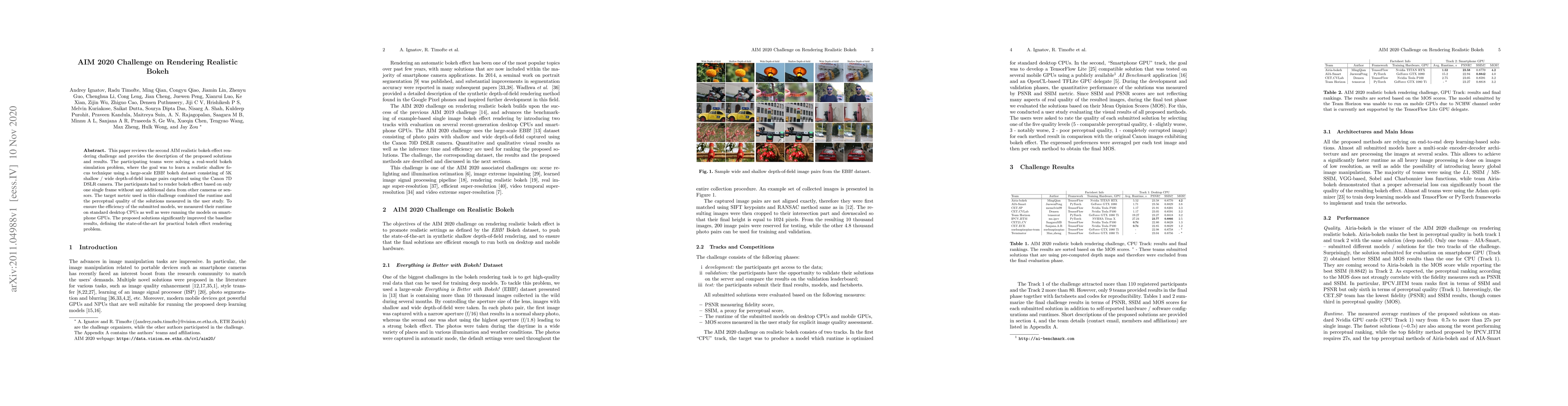 This paper reviews the second AIM realistic bokeh effect rendering challenge and provides the description of the proposed solutions and results. The participating teams were solving a real-world bokeh simulation problem, where the goal was to learn a realistic shallow focus technique using a large-scale EBB! bokeh dataset consisting of 5K shallow / wide depth-of-field image pairs captured using the Canon 7D DSLR camera. The participants had to render bokeh effect based on only one single frame without any additional data from other cameras or sensors. The target metric used in this challenge combined the runtime and the perceptual quality of the solutions measured in the user study. To ensure the efficiency of the submitted models, we measured their runtime on standard desktop CPUs as well as were running the models on smartphone GPUs. The proposed solutions significantly improved the baseline results, defining the state-of-the-art for practical bokeh effect rendering problem.