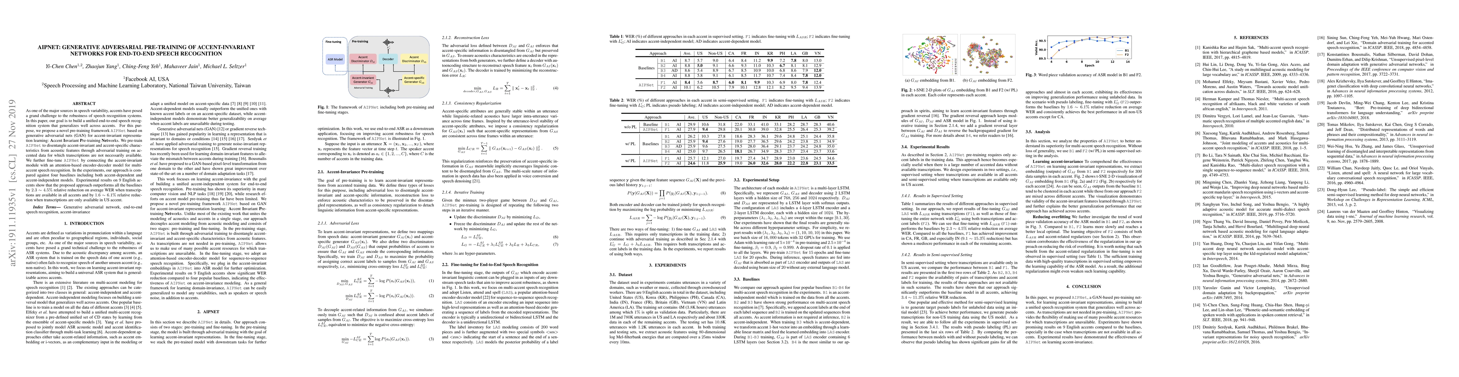 This paper proposes AIPNet, a generative adversarial pre-training framework for accent-invariant representation learning to enhance end-to-end speech recognition across various accents. Experiments demonstrate AIPNet's superior performance over baselines, achieving a significant reduction in word error rates across multiple English accents.