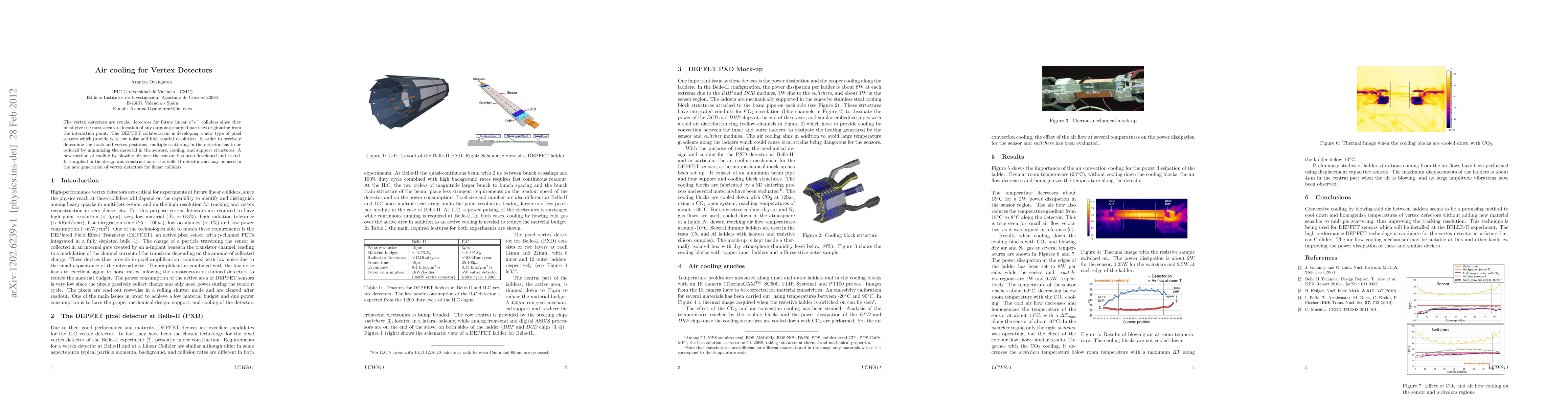 The vertex detectors are crucial detectors for future linear e+e- colliders since they must give the most accurate location of any outgoing charged particles originating from the interaction point. The DEPFET collaboration is developing a new type of pixel sensors which provide very low noise and high spatial resolution. In order to precisely determine the track and vertex positions, multiple scattering in the detector has to be reduced by minimizing the material in the sensors, cooling, and support structures. A new method of cooling by blowing air over the sensors has been developed and tested. It is applied in the design and construction of the Belle-II detector and may be used in the new generation of vertex detectors for linear colliders.