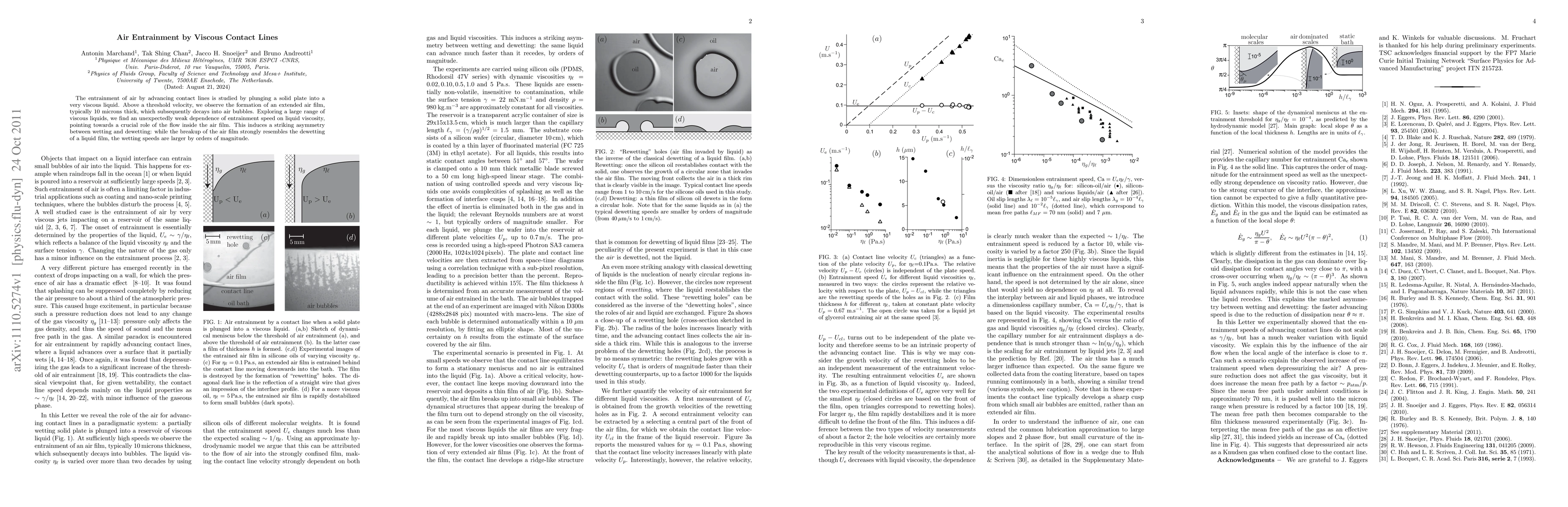 The paper presents an in-depth experimental analysis of air entrainment by advancing contact lines in highly viscous liquids, revealing the significant influence of air flow within the confined air film on entrainment speed.