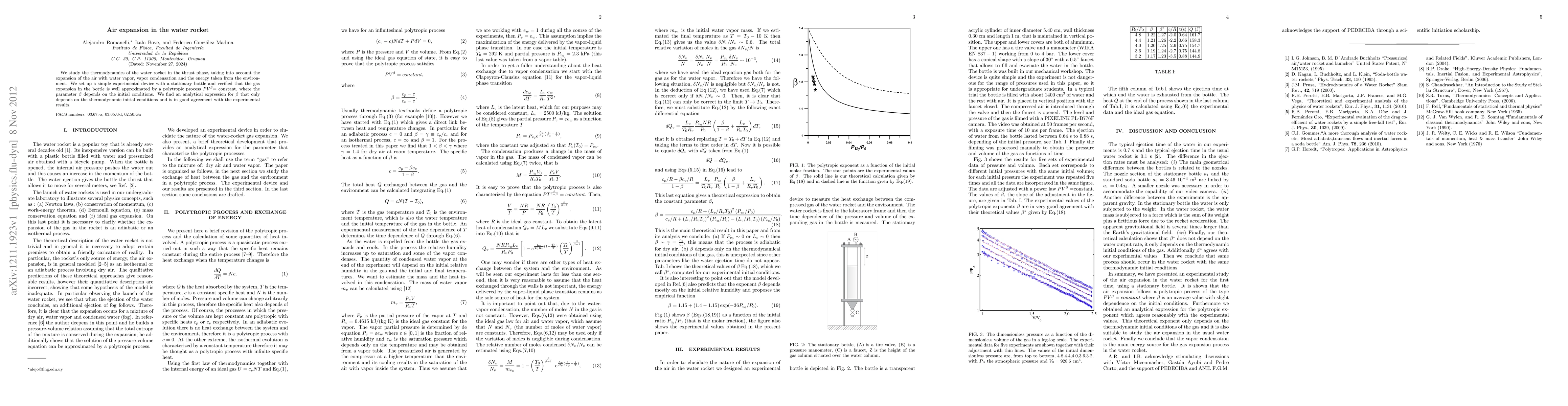 Researchers studied air expansion in water rockets, finding an analytical expression for ² that depends on thermodynamic initial conditions, which agrees with experimental results.