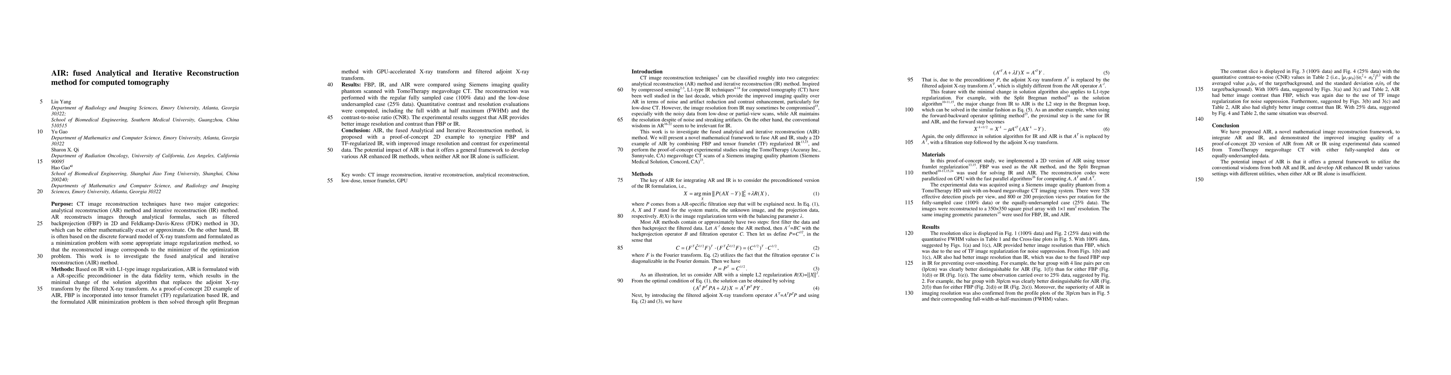 The AIR method combines analytical and iterative reconstruction techniques for CT imaging, aiming to enhance image resolution and contrast. By integrating filtered backprojection into tensor framelet-regularized iterative reconstruction, AIR demonstrates improved results over traditional methods.
