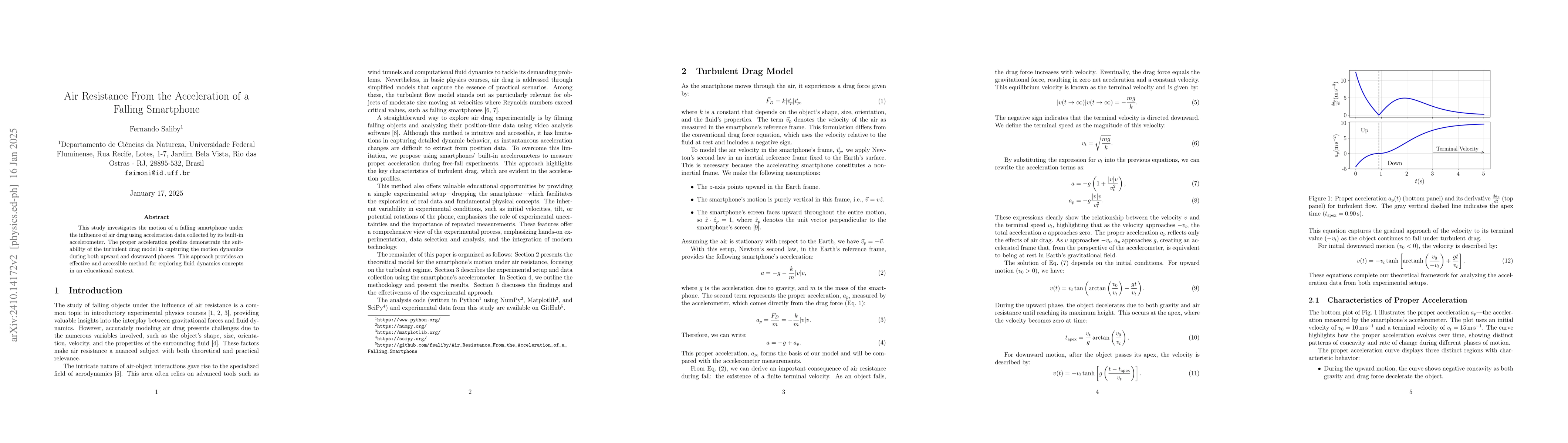 This study investigates the motion of a falling smartphone under the influence of air drag using acceleration data collected by its built-in accelerometer. By analyzing the proper acceleration profiles, we could distinguish between laminar and turbulent drag regimes, a distinction readily apparent even through visual inspection of the data. The turbulent drag model proves to be a suitable representation for the observed motion, accurately capturing the dynamics of both the upward and downward phases of the smartphone's flight. This approach provides an effective and simple method to explore fluid dynamics concepts in an educational context.