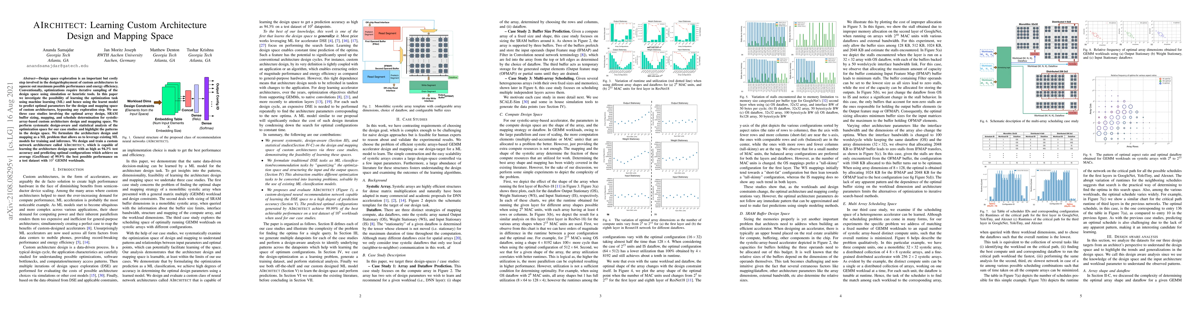 This paper proposes AIRCHITECT, a machine learning model that learns custom architecture design and mapping space optimization, thereby bypassing traditional costly exploration methods. Through three case studies, it demonstrates high accuracy in predicting optimal design parameters, achieving 94.3% test accuracy and 99.9% of the best possible performance on average.