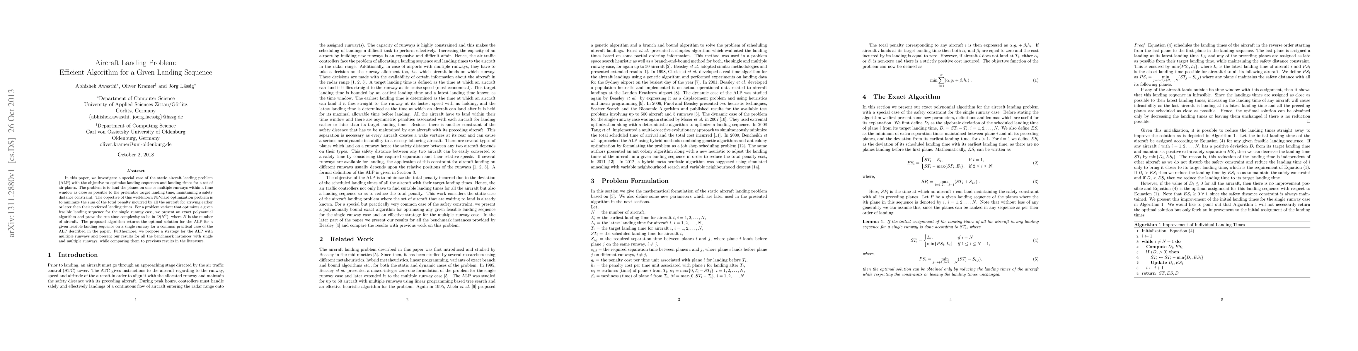 An exact polynomial time algorithm for optimizing landing sequences with proven run-time complexity and its extension to multiple runways.