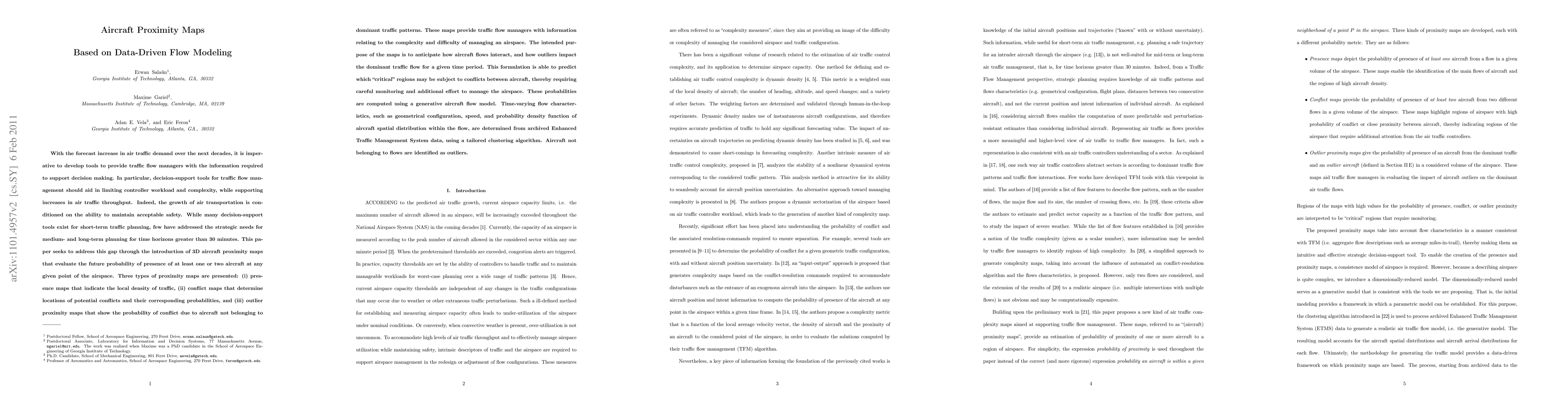 With the forecast increase in air traffic demand over the next decades, it is imperative to develop tools to provide traffic flow managers with the information required to support decision making. In particular, decision-support tools for traffic flow management should aid in limiting controller workload and complexity, while supporting increases in air traffic throughput. While many decision-support tools exist for short-term traffic planning, few have addressed the strategic needs for medium- and long-term planning for time horizons greater than 30 minutes. This paper seeks to address this gap through the introduction of 3D aircraft proximity maps that evaluate the future probability of presence of at least one or two aircraft at any given point of the airspace. Three types of proximity maps are presented: presence maps that indicate the local density of traffic; conflict maps that determine locations and probabilities of potential conflicts; and outliers maps that evaluate the probability of conflict due to aircraft not belonging to dominant traffic patterns. These maps provide traffic flow managers with information relating to the complexity and difficulty of managing an airspace. The intended purpose of the maps is to anticipate how aircraft flows will interact, and how outliers impact the dominant traffic flow for a given time period. This formulation is able to predict which "critical" regions may be subject to conflicts between aircraft, thereby requiring careful monitoring. These probabilities are computed using a generative aircraft flow model. Time-varying flow characteristics, such as geometrical configuration, speed, and probability density function of aircraft spatial distribution within the flow, are determined from archived Enhanced Traffic Management System data, using a tailored clustering algorithm. Aircraft not belonging to flows are identified as outliers.
