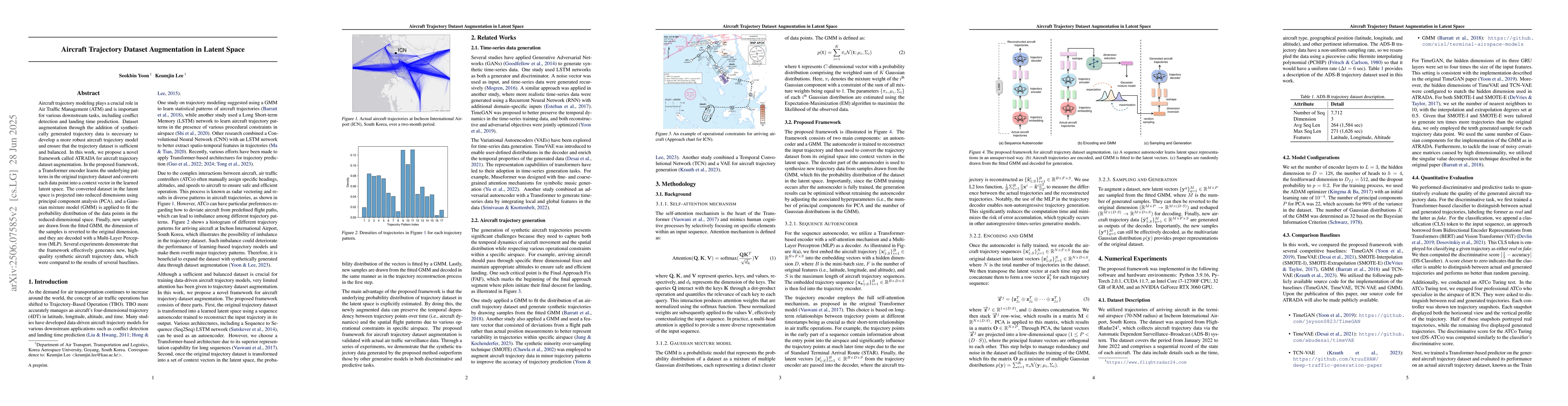 This research is significant as it addresses the need for robust aircraft trajectory models in Air Traffic Management (ATM) by augmenting datasets with synthetic data. It ensures the dataset is sufficient, balanced, and maintains the predictive characteristics of actual trajectories, which is crucial for tasks like conflict detection and landing time prediction.