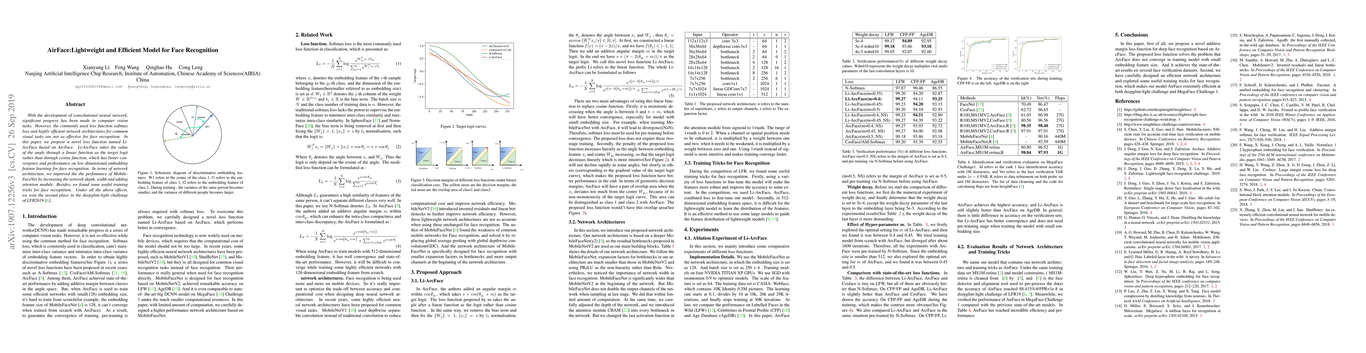 This research is significant as it addresses the trade-off between accuracy and computational cost for face recognition on mobile devices, proposing an efficient model (AirFace) that performs well in both deepglint-light and MegaFace Challenge 1.