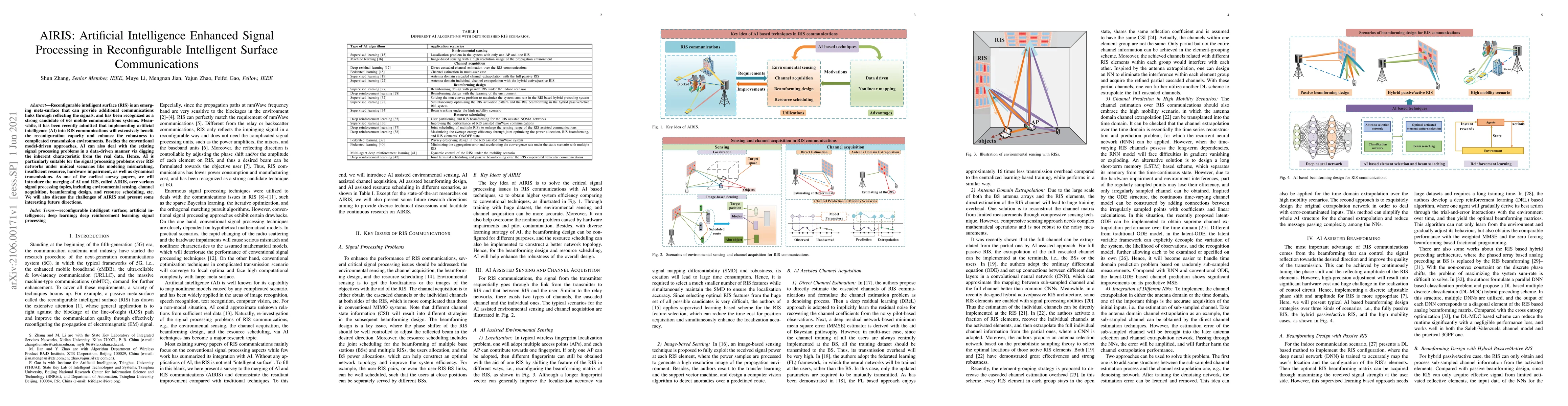 Reconfigurable intelligent surface (RIS) is an emerging meta-surface that can provide additional communications links through reflecting the signals, and has been recognized as a strong candidate of 6G mobile communications systems. Meanwhile, it has been recently admitted that implementing artificial intelligence (AI) into RIS communications will extensively benefit the reconfiguration capacity and enhance the robustness to complicated transmission environments. Besides the conventional model-driven approaches, AI can also deal with the existing signal processing problems in a data-driven manner via digging the inherent characteristic from the real data. Hence, AI is particularly suitable for the signal processing problems over RIS networks under unideal scenarios like modeling mismatching, insufficient resource, hardware impairment, as well as dynamical transmissions. As one of the earliest survey papers, we will introduce the merging of AI and RIS, called AIRIS, over various signal processing topics, including environmental sensing, channel acquisition, beamforming design, and resource scheduling, etc. We will also discuss the challenges of AIRIS and present some interesting future directions.