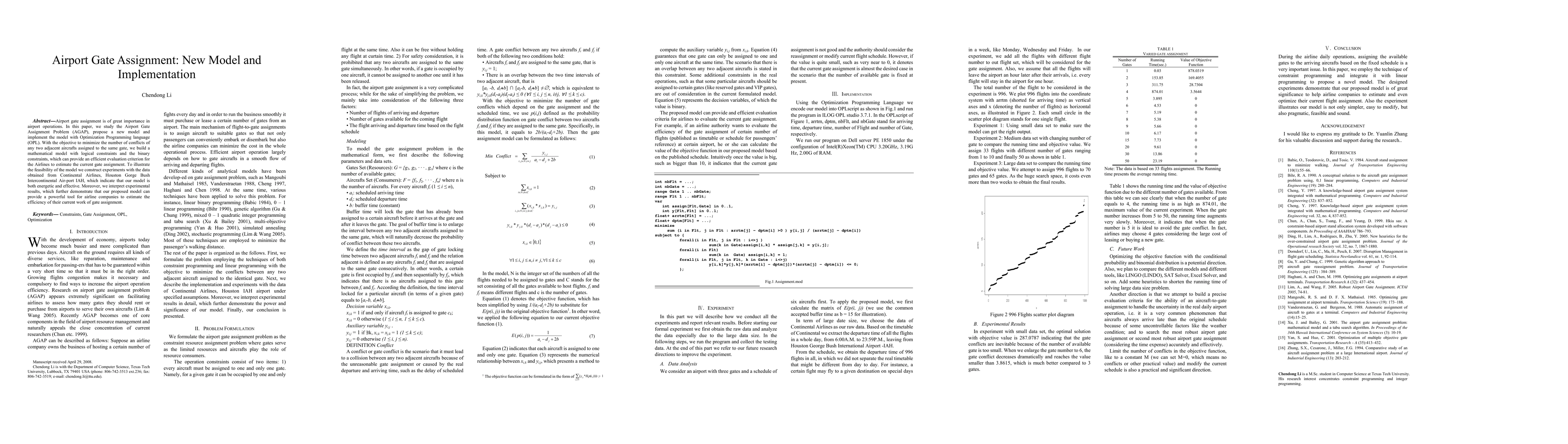 Airport gate assignment is of great importance in airport operations. In this paper, we study the Airport Gate Assignment Problem (AGAP), propose a new model and implement the model with Optimization Programming language (OPL). With the objective to minimize the number of conflicts of any two adjacent aircrafts assigned to the same gate, we build a mathematical model with logical constraints and the binary constraints, which can provide an efficient evaluation criterion for the Airlines to estimate the current gate assignment. To illustrate the feasibility of the model we construct experiments with the data obtained from Continental Airlines, Houston Gorge Bush Intercontinental Airport IAH, which indicate that our model is both energetic and effective. Moreover, we interpret experimental results, which further demonstrate that our proposed model can provide a powerful tool for airline companies to estimate the efficiency of their current work of gate assignment.