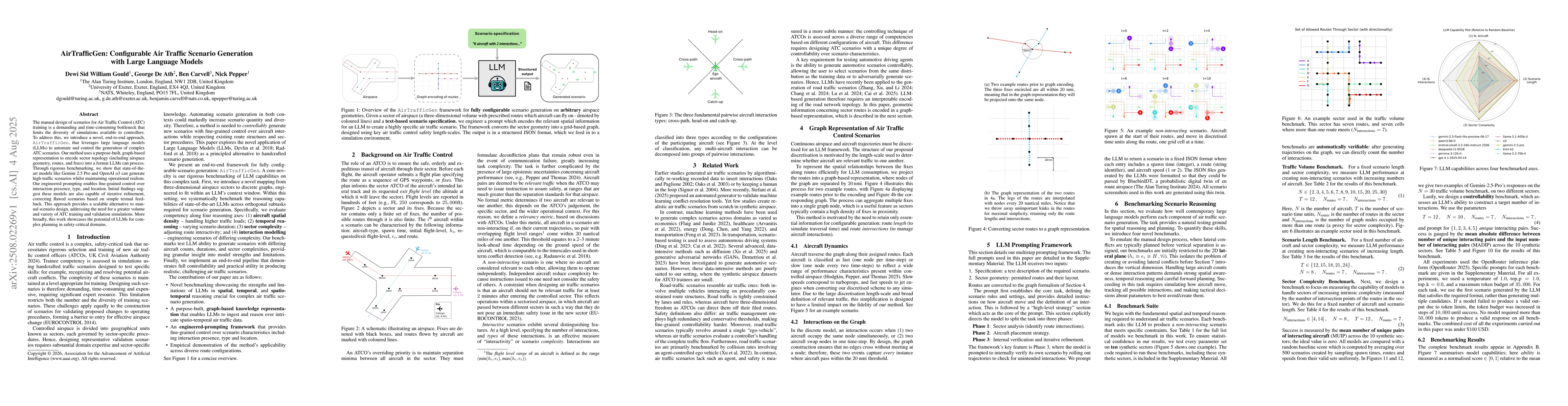 The novelty lies in applying LLMs to the specific domain of ATC scenario generation, leveraging their capacity for complex planning in a safety-critical context, and demonstrating their ability for iterative scenario refinement.