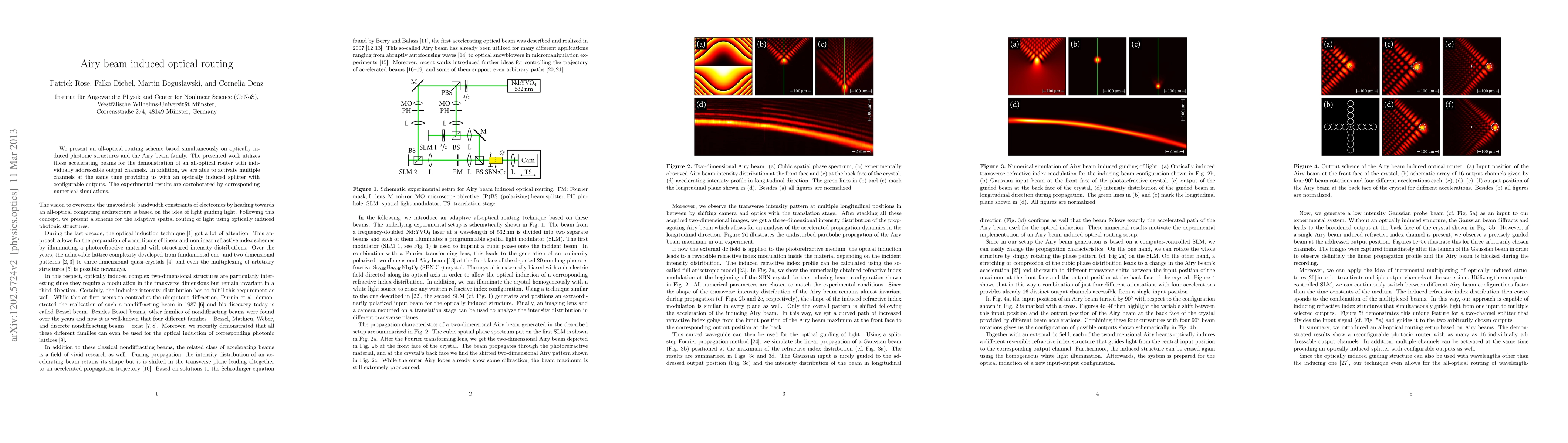 We present an all-optical routing scheme based simultaneously on optically induced photonic structures and the Airy beam family. The presented work utilizes these accelerating beams for the demonstration of an all-optical router with individually addressable output channels. In addition, we are able to activate multiple channels at the same time providing us with an optically induced splitter with configurable outputs. The experimental results are corroborated by corresponding numerical simulations.