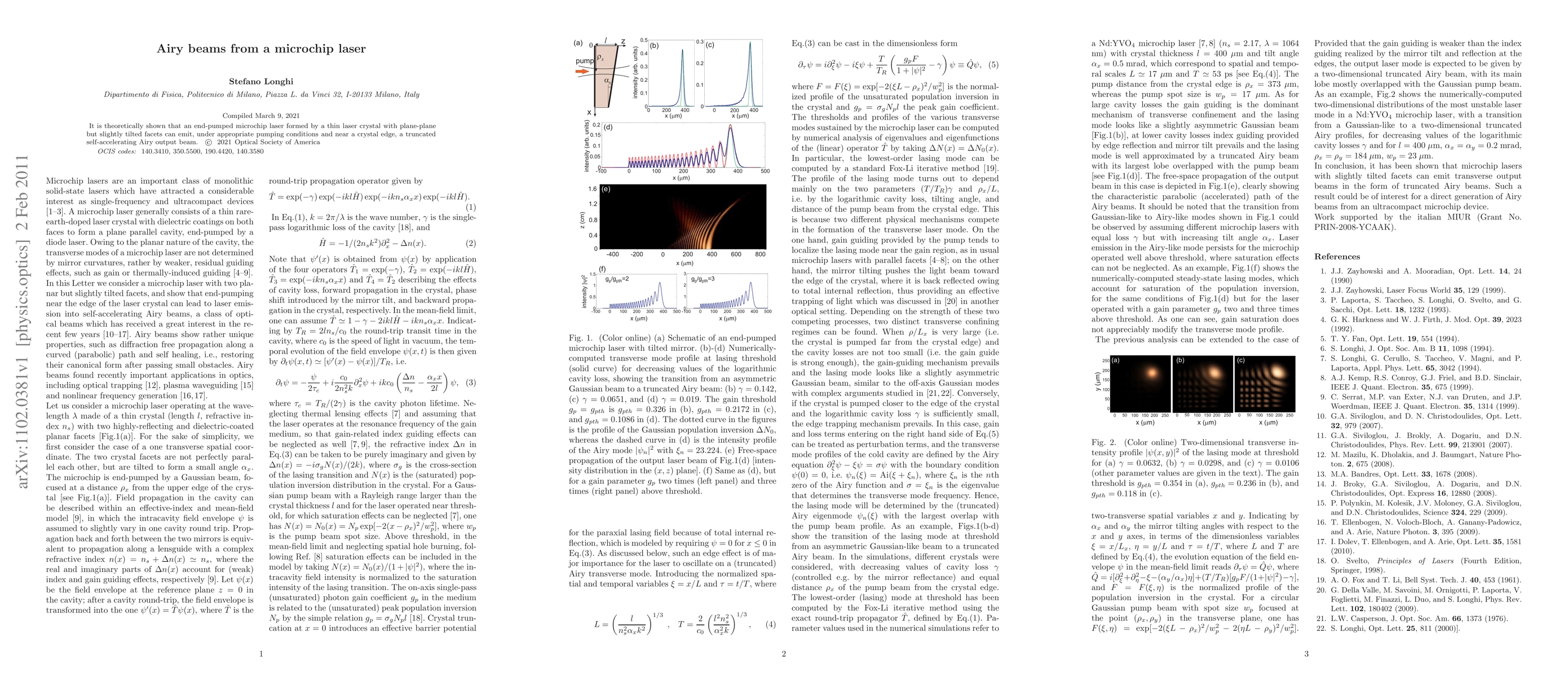 This research demonstrates that a specially configured end-pumped microchip laser can produce a truncated self-accelerating Airy beam under specific conditions, showcasing a novel output beam characteristic. The study highlights the potential for advanced laser applications through this unique beam behavior.