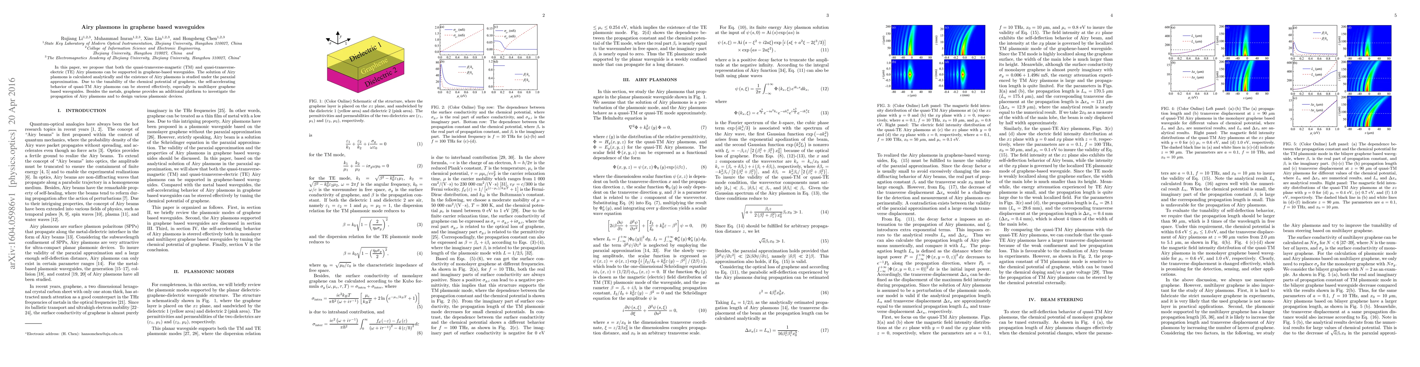 The paper presents an analytical model for Airy plasmons in graphene-based waveguides, demonstrating the support of both TM and TE Airy plasmons and their unique properties.