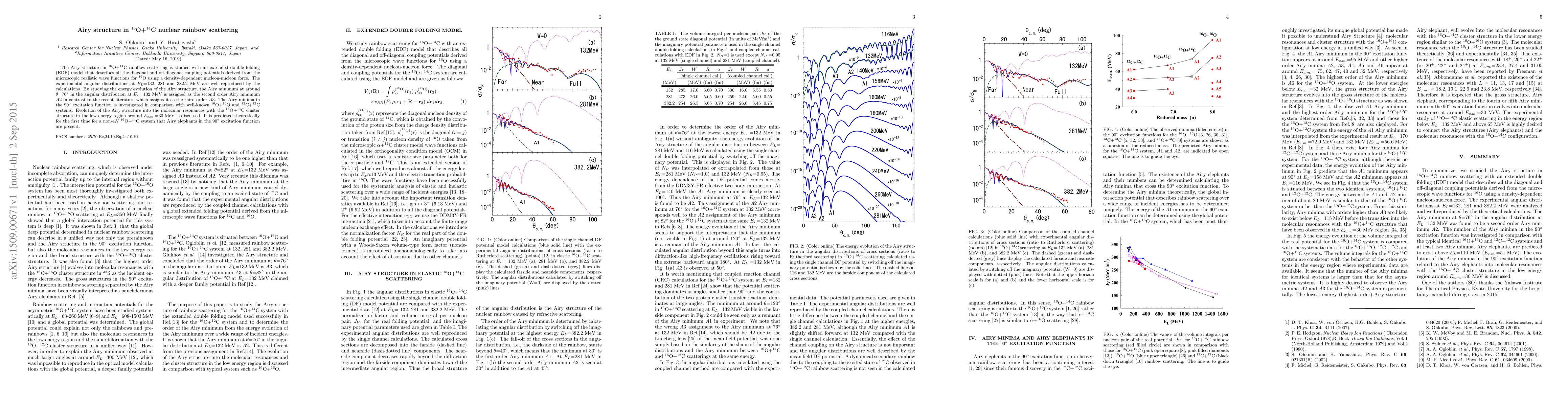 Researchers studied airy structure in $^{16}$O+$^{14}$C nuclear scattering using an extended double folding model, reproducing experimental angular distributions at different energies and predicting the presence of airy elephants for the first time in a non-$4N$ system.