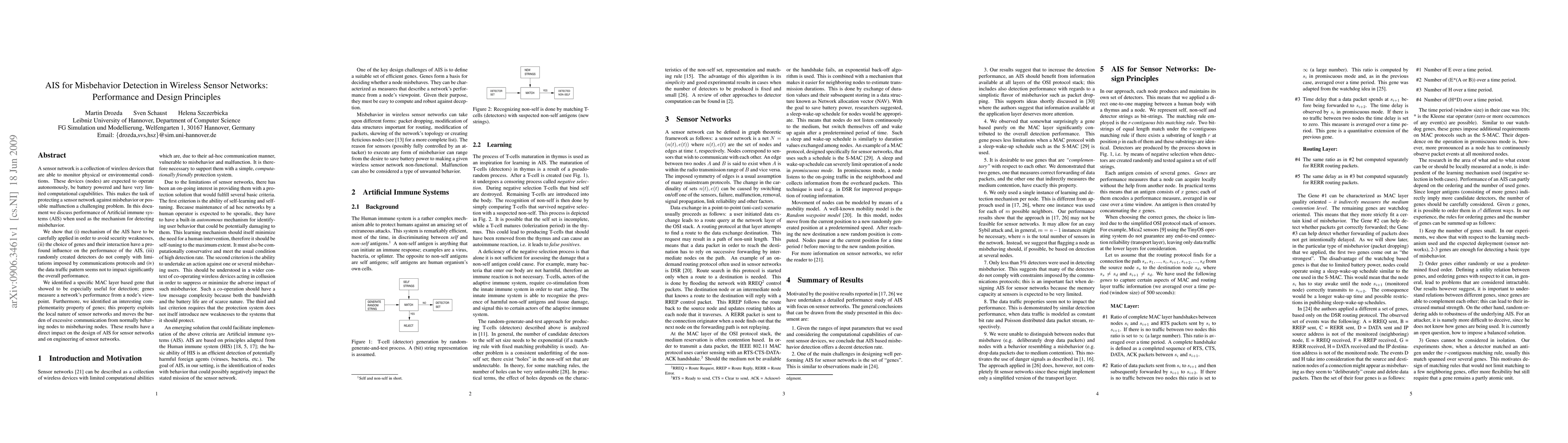 Researchers evaluated the performance of Artificial Immune Systems for detecting misbehavior in wireless sensor networks, finding that a specific MAC layer gene is particularly effective and that local communication properties can help reduce network traffic.