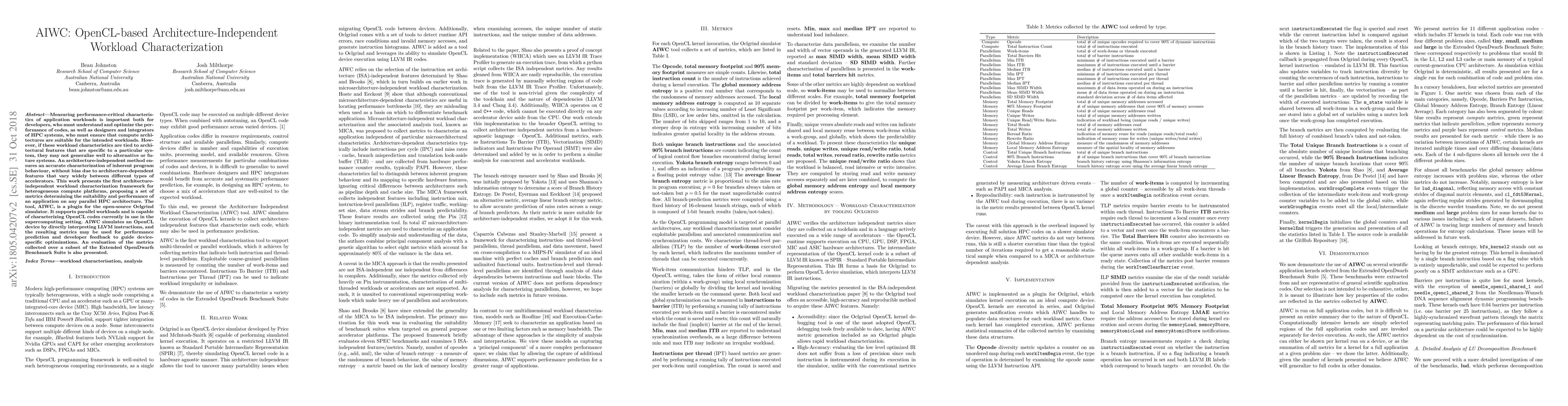 Researchers developed AIWC, an open-source tool that characterizes workload performance on various HPC architectures, providing a framework for predicting performance and guiding device-specific optimizations.