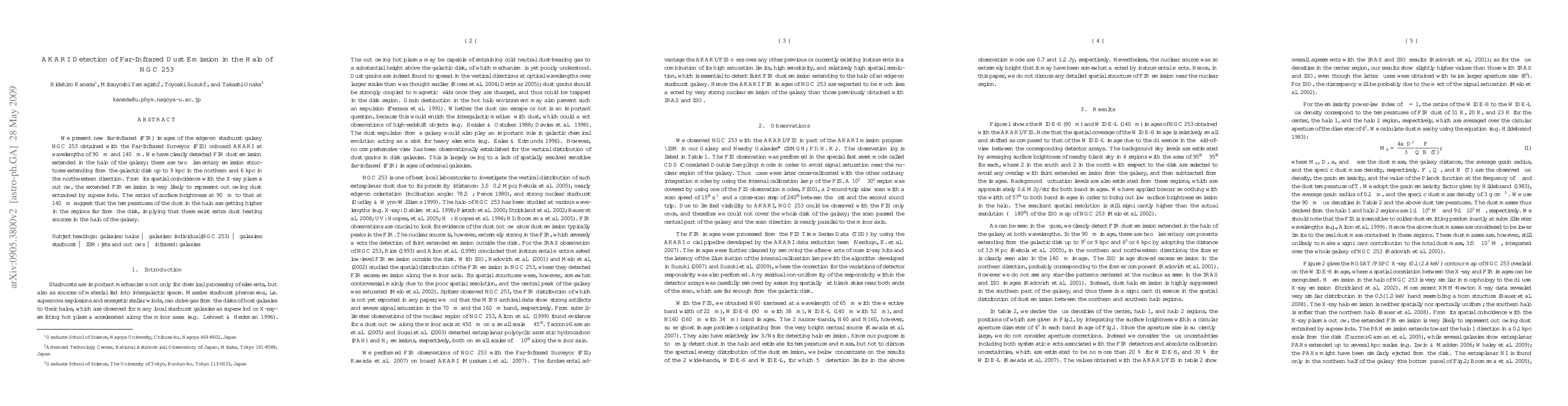 The AKARI satellite detected extended far-infrared dust emission in the halo of NGC253, revealing filamentary structures likely associated with superwind outflows. The higher temperatures of dust in the halo suggest additional heating sources beyond the galactic disk.