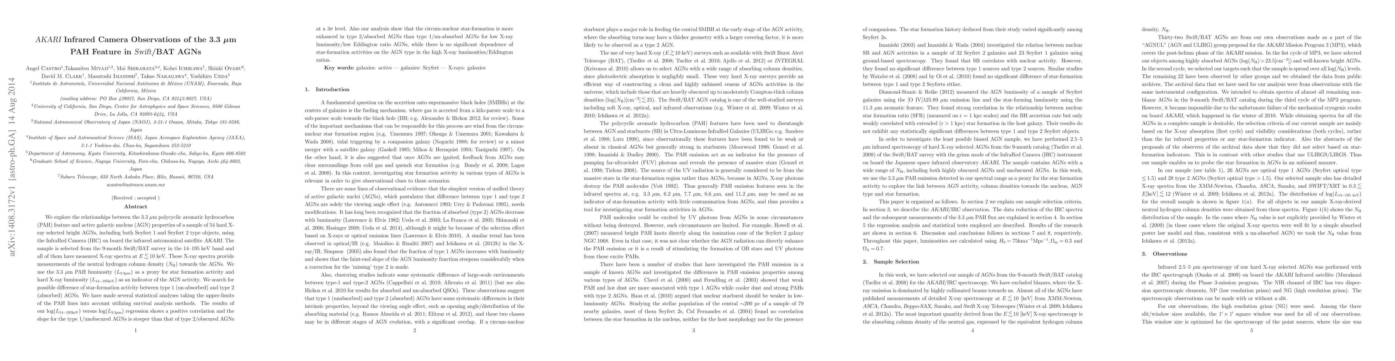 A study using AKARI infrared camera observations found a positive correlation between AGN activity and star formation in Seyfert galaxies, with type 1/unobscured AGNs showing steeper slopes than type 2/obscured AGNs.