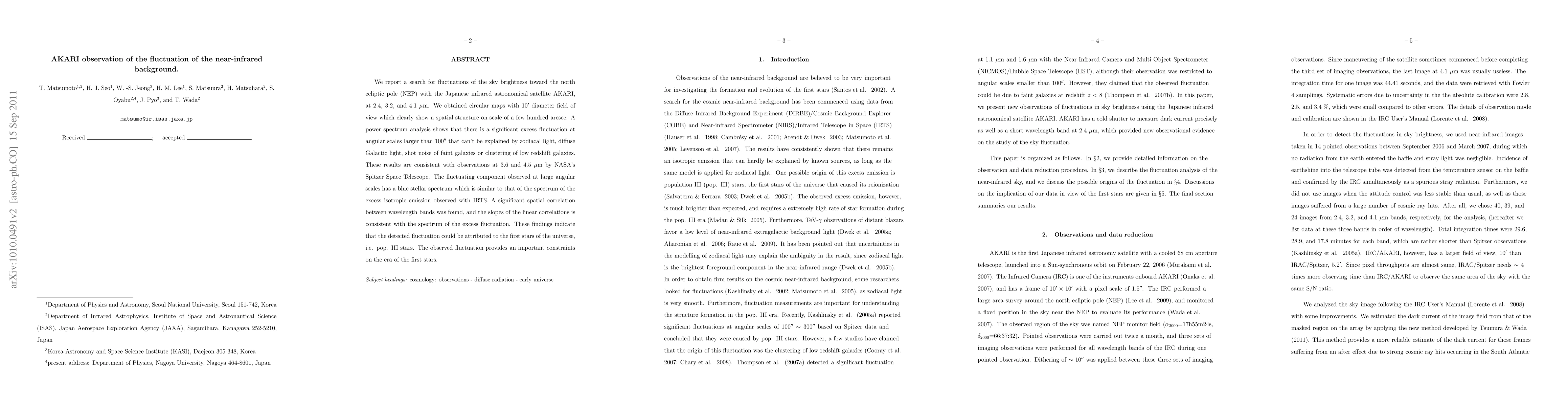 The AKARI satellite observed near-infrared sky brightness fluctuations at NEP, finding excess at large angular scales unexplained by known components. The fluctuation's spectral match with Population III star emission suggests it originates from the first stars of the universe, providing crucial constraints on their era.